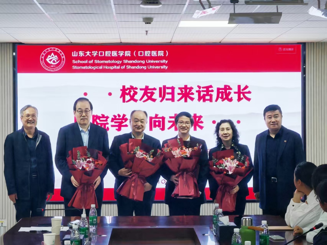 1980级校友,上海交通大学口腔医学院郑家伟教授、泰安市中心医院李晓光教授受聘成为了校友导师。1980级校友,山大口腔张君、王旭霞两位老师共同参加座谈。四位校友与同学们分享了自己在母校的学习经历与从业历程,强调了大学时期培养的学习能力和综合素质对于未来职业生涯的重要性,同时也结合自己的专业领域,分享了行业发展的最新趋势和前沿技术,鼓励学弟学妹们要敢于梦想、勇于追求,不断挑战自我,为成为一名卓越口腔医学人才持续努力。同学们也向学长学姐请教了有关学业职业规划、考研深造、实习就业、科研创新等方面的问题,并表达了以校友为榜样的决心和对未来发展的期待。整个座谈会交流气氛热烈,校友们的话语中充满了对母校的深厚情谊和对学弟学妹们的殷切期望。