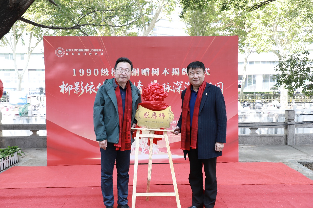 会后,张青与校友代表在学院(医院)楼前,以柳树为纽带,共同参加了感恩柳换牌仪式。
