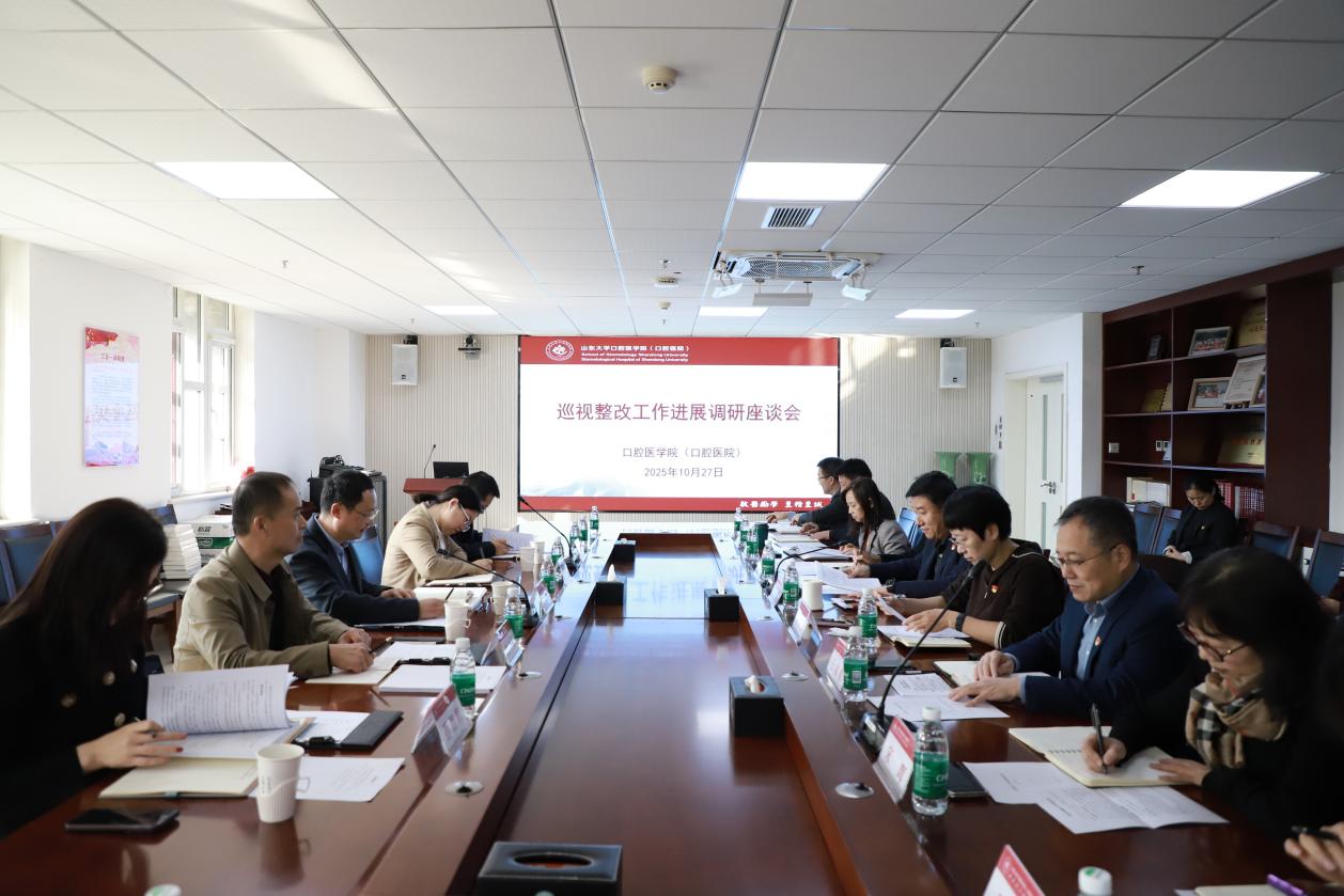 朱恪川指出,口腔医学院(口腔医院)党委认真落实学校党委部署要求,切实把巡视整改作为推动高质量发展和全面从严治党的重要抓手,层层压实整改责任,高度聚焦难点问题,统筹做好结合文章,在学科建设、教育教学、科学研究、人才队伍建设、内部治理等方面实现重要突破,整改工作取得阶段性显著成效。要紧密结合贯彻落实党的二十届四中全会精神和学校第十五次党代会部署,在思想认识上再深化、在整改责任上再强化、在整改措施上再升级,以巡视整改扎实成效推动山大口腔事业高质量发展,为学校“双一流”建设和健康山东、健康中国战略贡献更大力量。