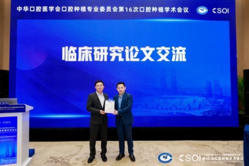 在临床研究论文交流专场,博士生孙绍庆分享了《基于 U0Net-MSFF-CBAM 模型的侧壁开窗上颌窦底提升术后移植骨材料自动识别与分割研究》、硕士生张清越分享了《先天性牙列缺损合并骨量不足:钛网辅助骨增量术的手术方案设计与临床实施》的研究结果,获得了评审专家与现场听众的高度评价和广泛赞誉。