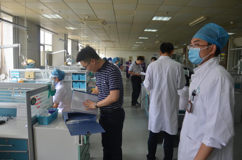 为检验我院各部门“三甲”复审工作落实情况,从而更有效的开展复审准备工作,6月27日,由院党委书记吕波、常务副院长葛少华等院领导组成的自查小组,以《三级口腔医院评审标准实施细则》为依据,对全院各部门评审准备情况展开全面自查工作。