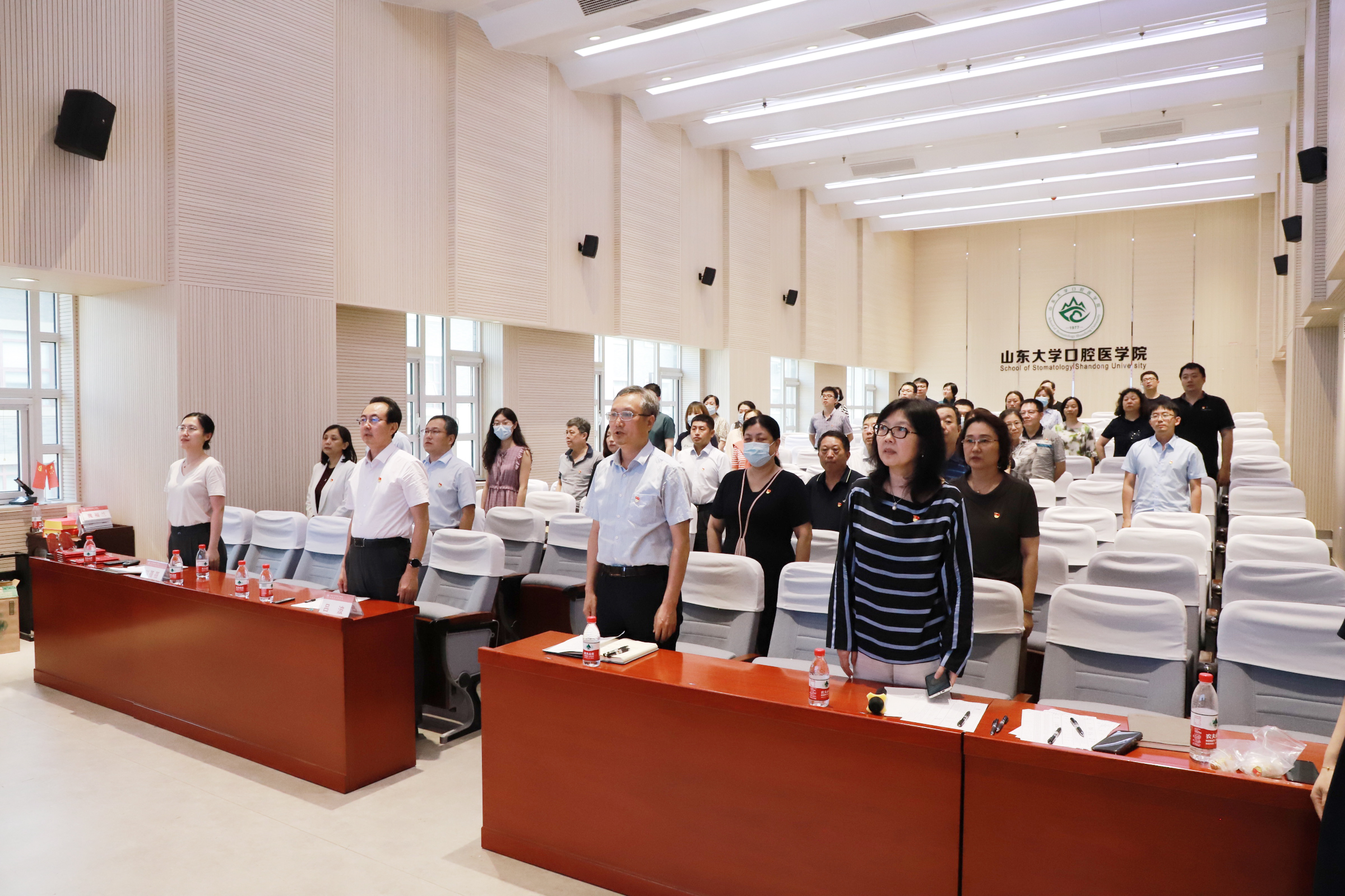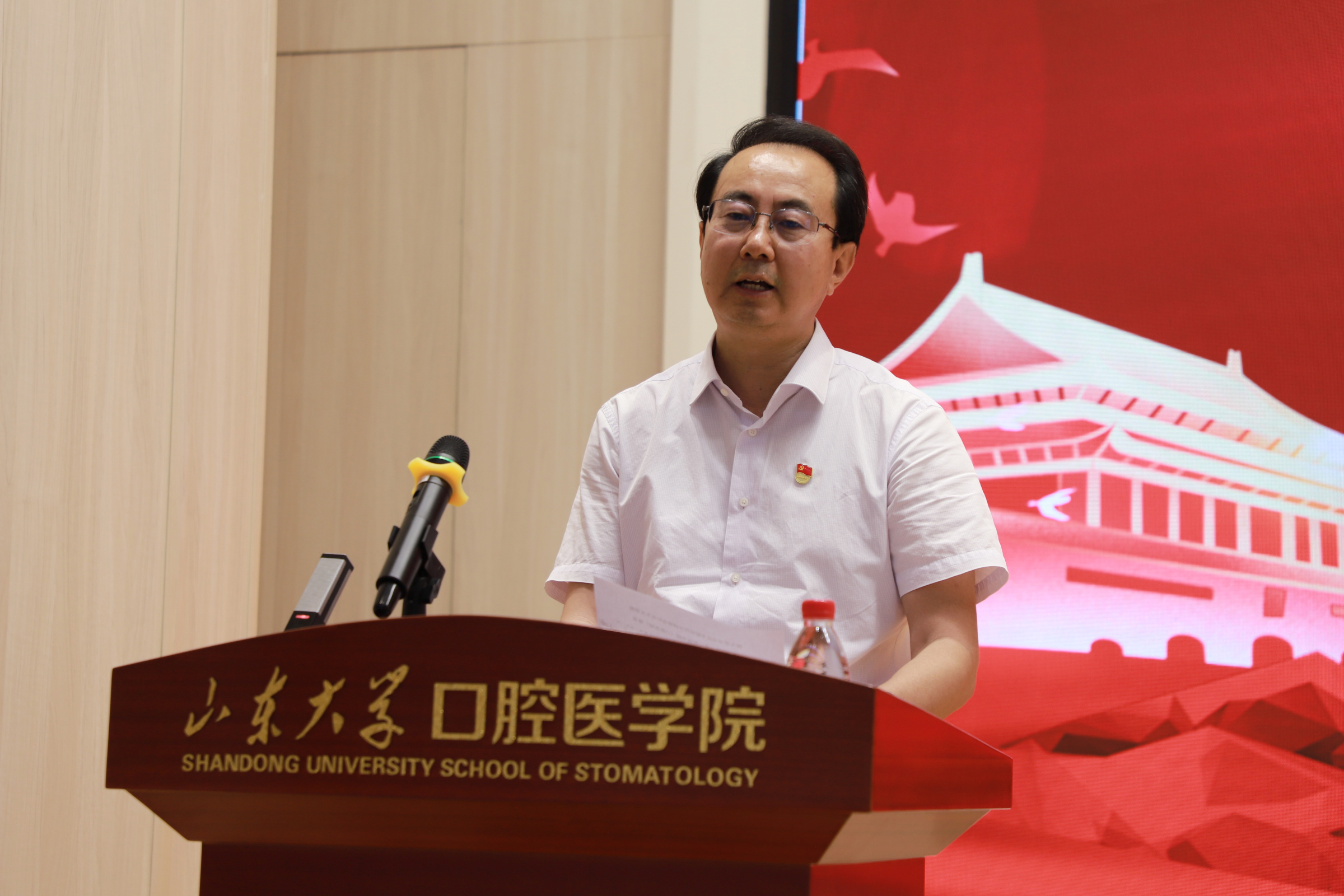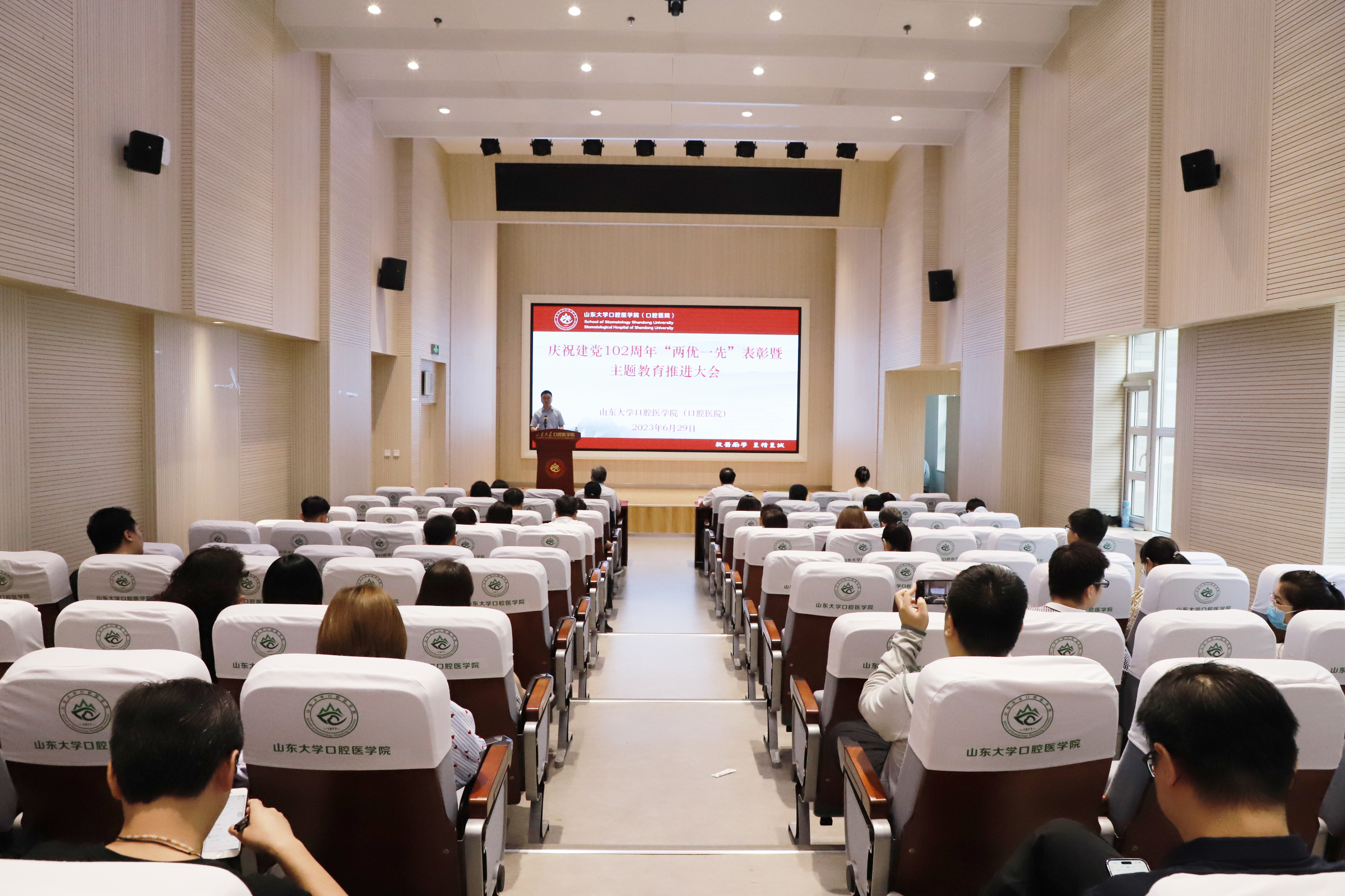 6月29日,口腔医学院(口腔医院)庆祝中国共产党成立102周年“两优一先”表彰暨主题教育推进大会在学院(医院)C座报告厅隆重举行。山东大学主题教育第六巡回指导组组员刘蓓蓓同志到会指导,学院(医院)党委书记吕波等领导班子成员、党委委员,各党支部书记、支部委员,各中层单位负责人,党员代表和受表彰人员代表参加会议。会议由党委副书记柳松主持。