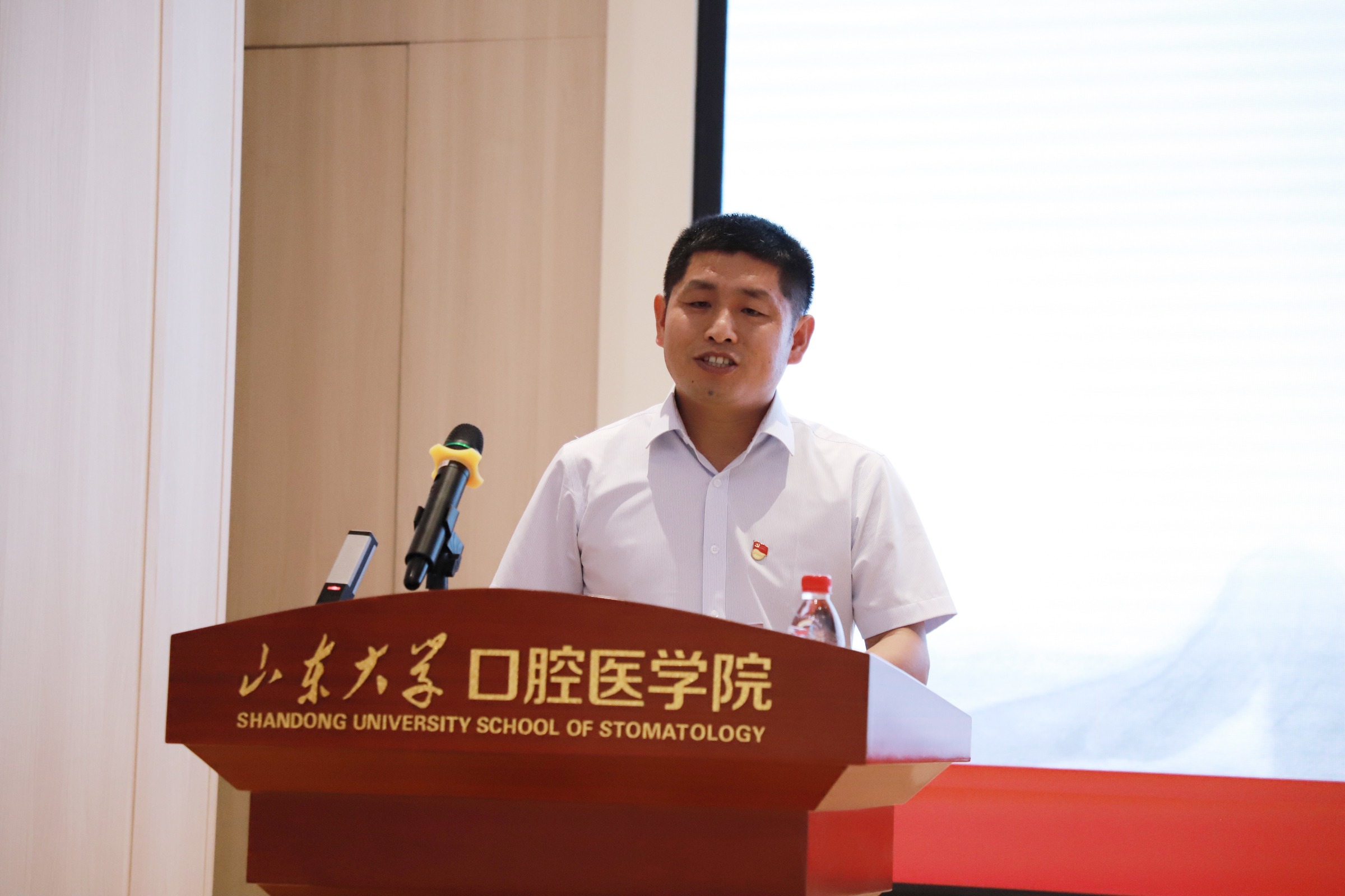 会上,吕波讲授主题教育专题党课。他指出,自主题教育开展以来,学院(医院)党委严格按照“学思想、强党性、重实践、建新功”的总要求,学做结合、以学促干、上下贯通、同题共答,取得了阶段性成果。他希望全院各党支部、各中层单位、全体党员干部和师生医务员工要牢牢把握主题教育的宝贵机遇,坚持系统观念、坚持求真务实、坚持问题导向,奋力谱写山大口腔医学事业高质量发展的新篇章。吕波强调,广大教师和全体工作人员,要坚决落实师德师风第一标准,筑牢为党育人、为国育才初心使命,以此次师德集中学习教育为契机,学习先进典型,激发榜样力量,进一步弘扬良好师德师风、医德医风,浓厚风清气正的育人氛围。针对下一步工作,吕波提出三点要求:一是要锚定目标真抓实干;二是要凝心聚力团结奋进;三是要全力守住廉洁安全底线。他号召全体党员干部,以受到表彰的集体和个人为榜样,为建设一流口腔医学院(口腔医院)做出新的更大贡献!