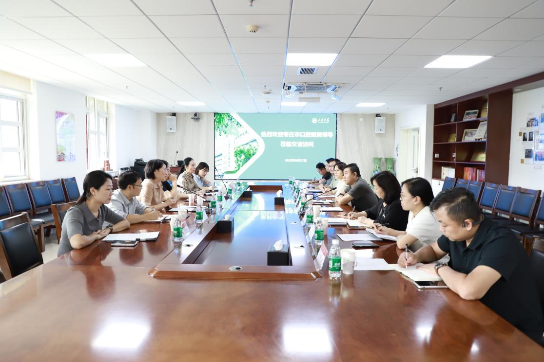 9月17日,枣庄市口腔医院党总支书记刘亚红一行到山大口腔进行调研。学院(医院)党委书记张青、院长葛少华、副院长魏福兰出席座谈会。会议由张青主持。