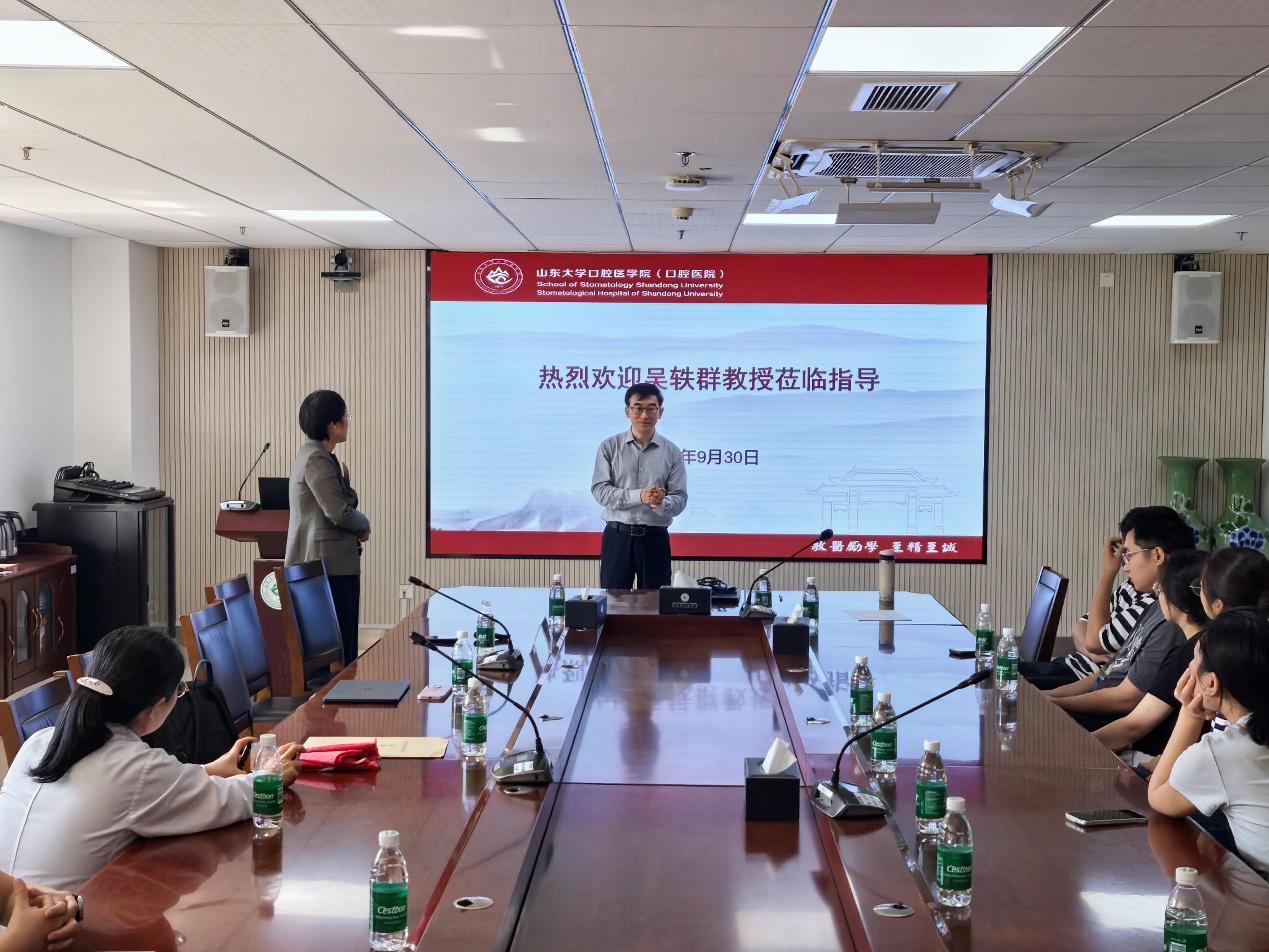 近日,上海交通大学医学院附属第九人民医院口腔第二门诊部主任吴轶群教授来院进行学术交流,并指导我院国家临床重点专科(牙周病科)建设。学院(医院)院长葛少华出席会议,牙周病科主任宋爱梅、种植科主任兰晶及部分牙周病科、种植科医务人员参加会议。