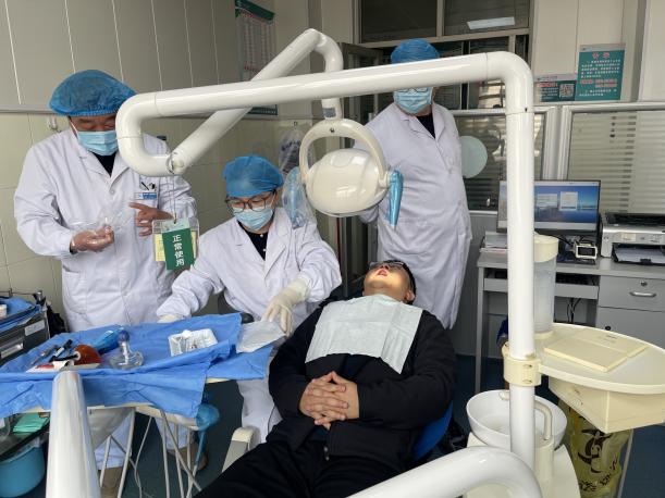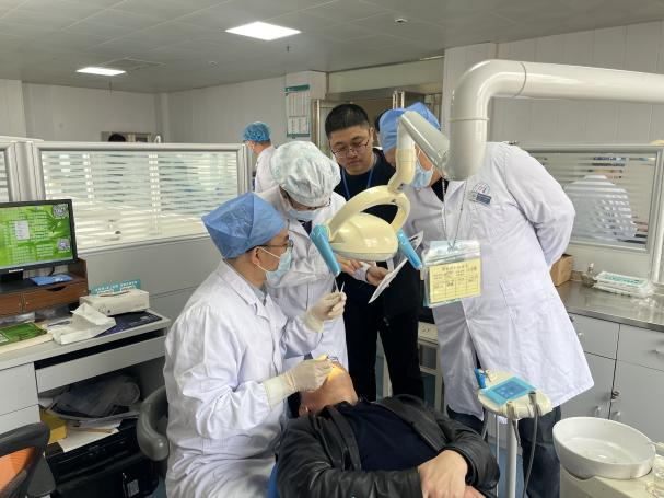 座谈会后,梁伟、周芹在当地医院口腔科开展了义诊活动,与科室医护进行交流,对该院口腔科未来发展规划提出了建设性意见。