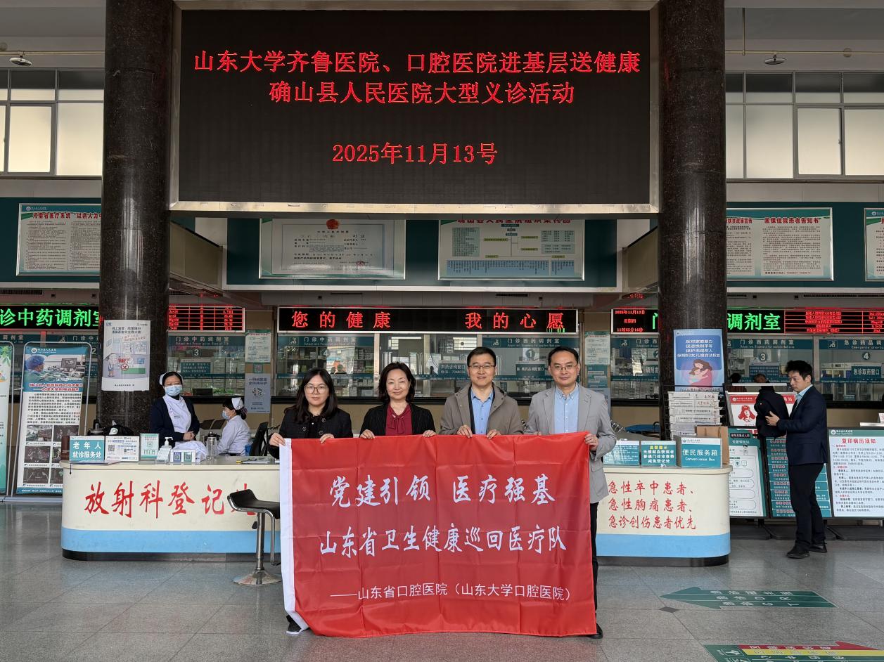 11月12—13日,山大口腔党委副书记柳松、医疗事业部部长吕艾芹、综合科副主任梁伟、口腔急诊科青年医师周芹等一行4人与齐鲁医院相关专家,赴河南省确山县人民医院开展医疗帮扶活动。