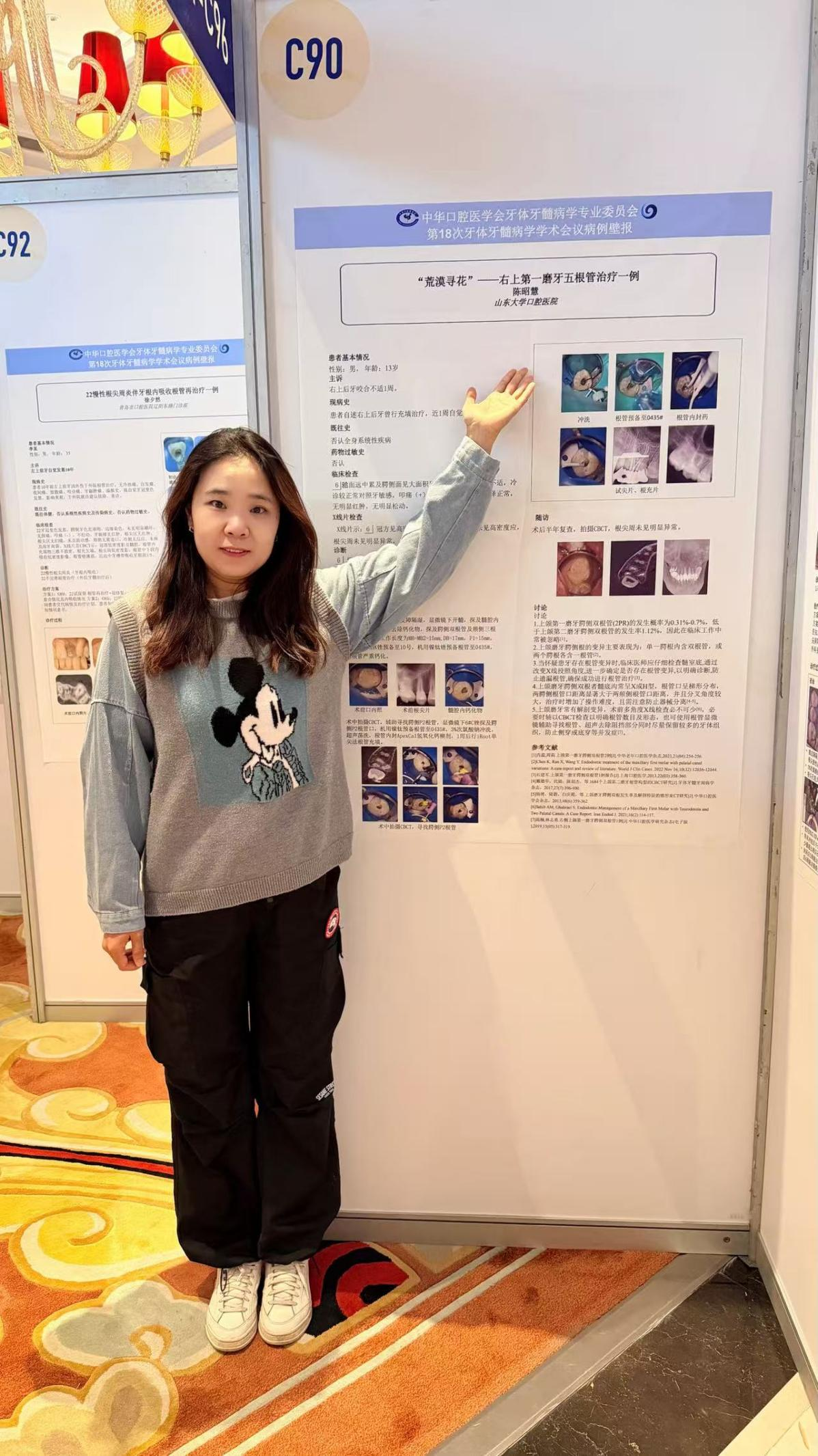 会上,学院(医院)牙体牙髓病科医生团队分享了复杂根管的临床诊疗经验与显微镜下的操作心得。其中,青年医师陈昭慧的病例成功入选壁报展示。她表示:“通过与顶尖团队的交流,我们不仅学到了前沿知识,也明确了未来方向。”