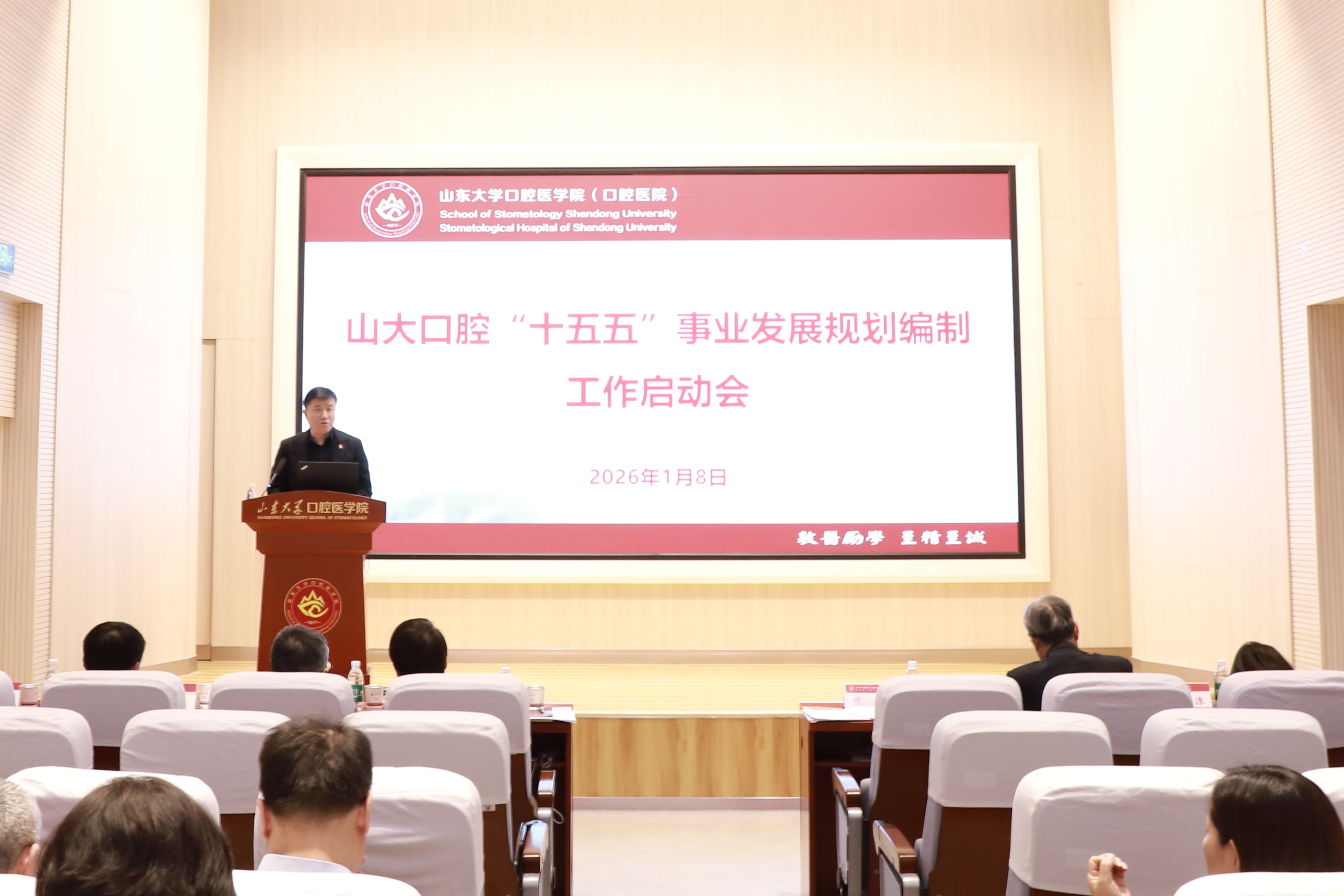1月8日,山大口腔召开“十五五”规划编制启动会。党委书记张青、院长葛少华及全体班子成员出席会议,各教工党支部书记,临床医技科室、行政职能部门、教研所及实验室等相关部门负责人,副高职称以上人员、护士长、学院(医院)双代会代表参加会议。