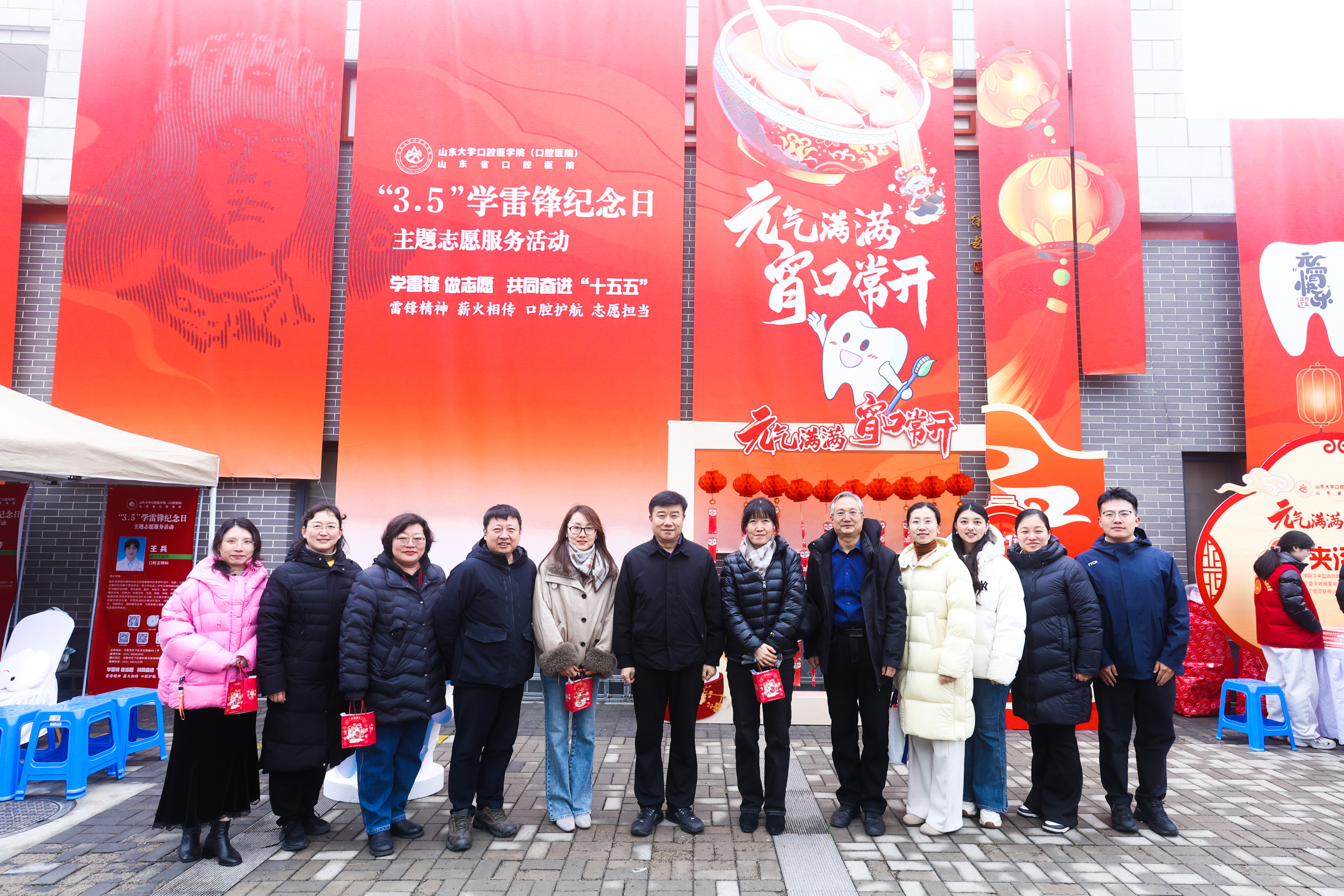 在第63个学雷锋纪念日到来之际,3月3日,农历正月十五元宵节,山大口腔“元气满满 宵口常开”学雷锋志愿服务活动在山东大学趵突泉校区火热开展。山东大学齐鲁医学院党工委副书记兼公共卫生学院党委书记赵福昌、齐鲁医学院学生管理办公室副主任孙钰、于茜,学院(医院)党委书记张青、副书记齐山华、副院长郭杰等莅临活动现场。