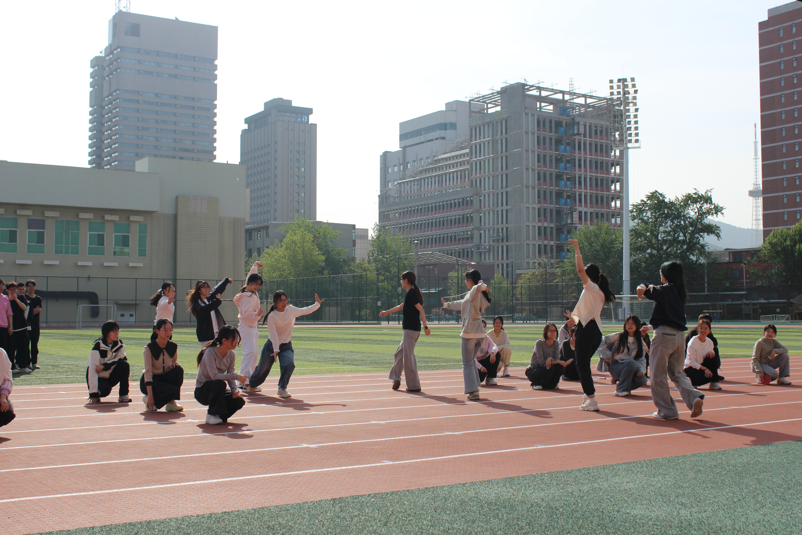 学院组织开展了集体热身活动,科学调动师生身体机能,确保赛事安全有序进行。随着赛事全面展开,赛场内外热潮涌动。竞技项目高潮迭起:短跑选手如离弦之箭,彰显速度之美;中长跑健儿坚持不懈,以耐力诠释医者韧性;4×100米接力赛中,队员们默契传接,凝聚团队力量,展现了敢闯敢拼、永不言弃的卓越风貌。趣味项目则别开生面:“搭石过河”考验协作平衡,“踢毽子”尽显灵动身姿,“沙包投掷”比拼精准技巧。这些项目将竞技与娱乐有机融合,有效缓解了比赛紧张氛围,让全体同学在轻松互动中增进了情谊,现场欢声笑语不断。
