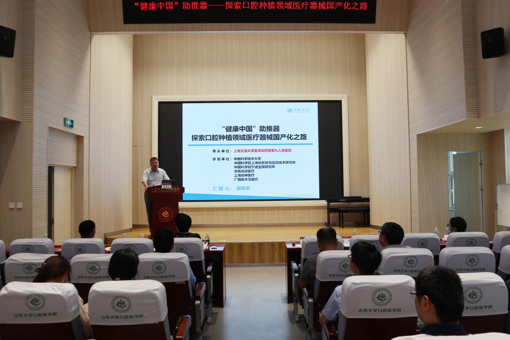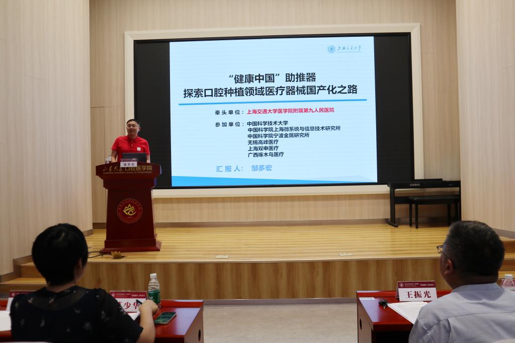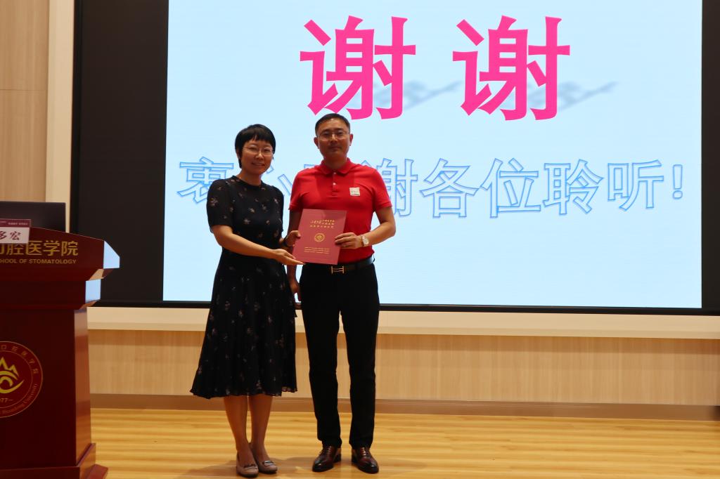 为畅通科技成果转化渠道,推动科技成果转化,6月8日上午,齐鲁医学院与口腔医学院(口腔医院)在口腔楼C座报告厅共同举办了学术讲座,邀请了上海交通大学医学院附属第九人民医院邹多宏教授做学术报告。本次讲座由齐鲁医学院科研与国际交流办公室副主任王振光主持,学院(医院)院长葛少华、部分教职医务员工及研究生参加了讲座。