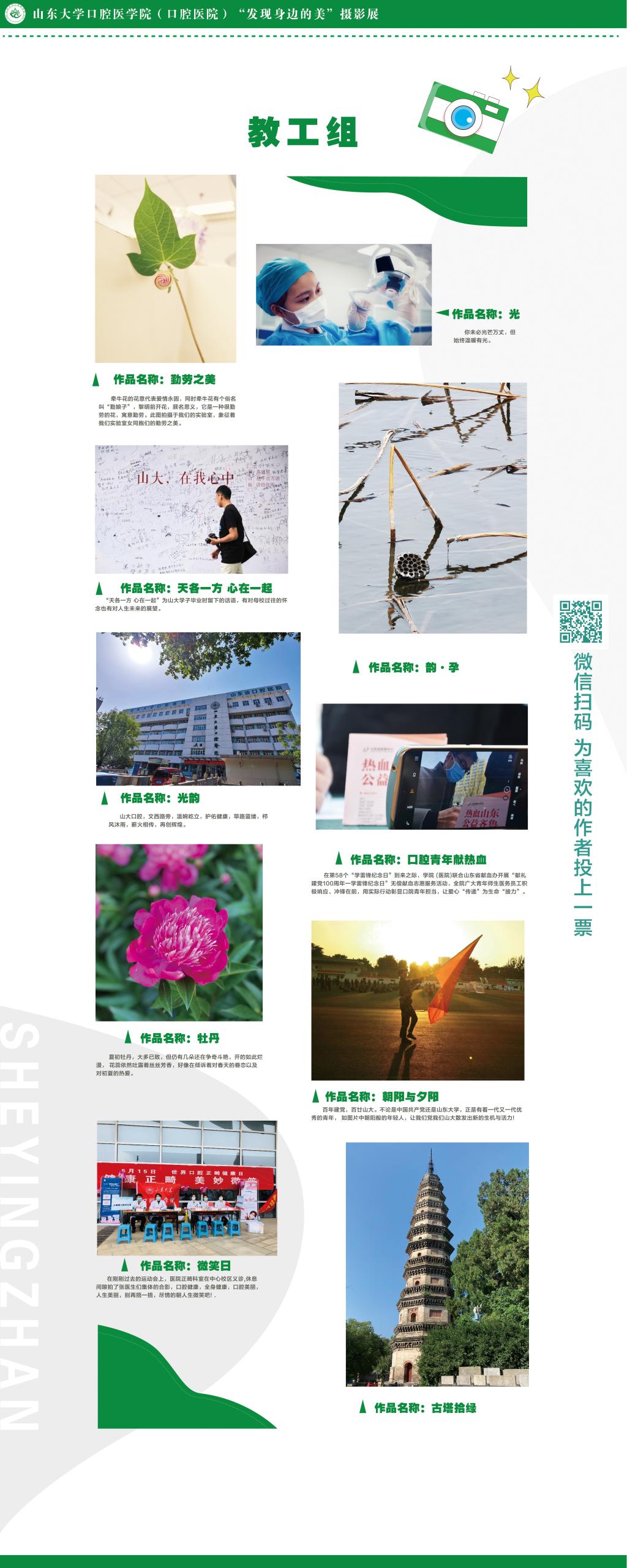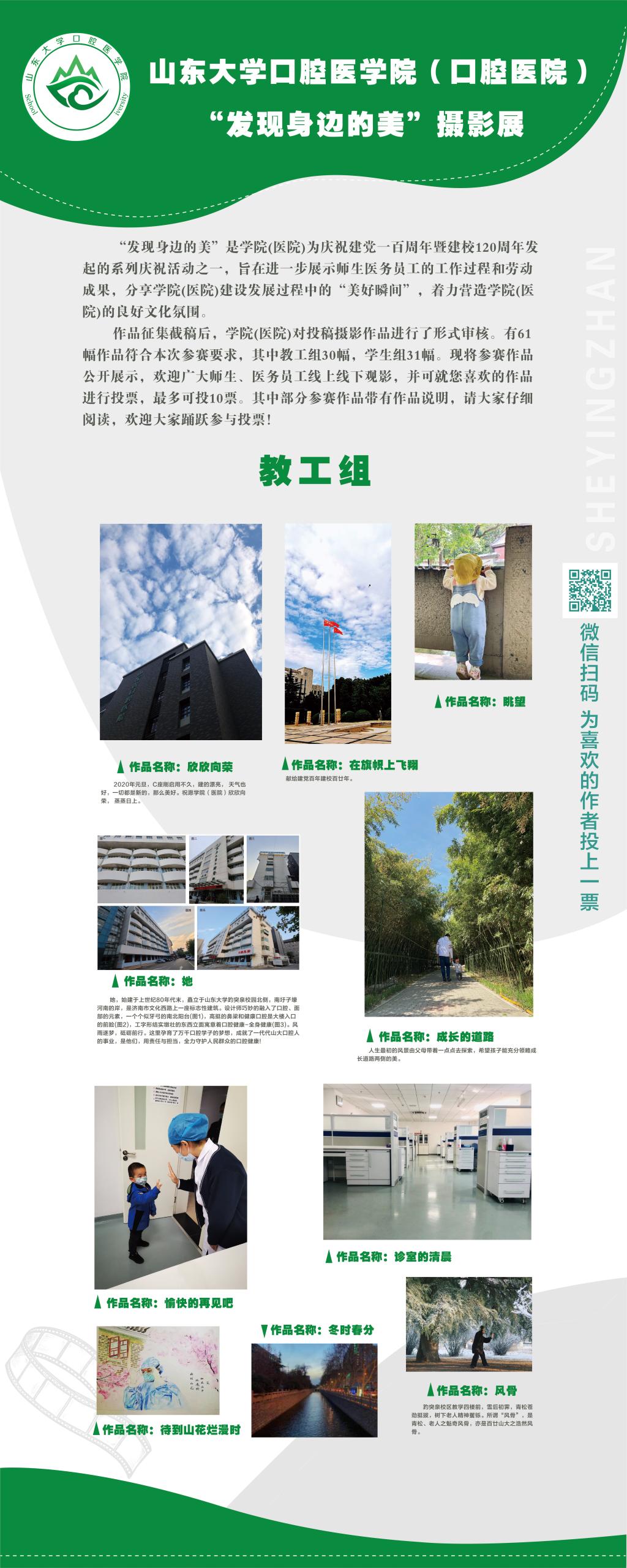 作品征集截稿后,学院(医院)对投稿摄影作品进行了形式审核。有61幅作品符合本次参赛要求,其中教工组30幅,学生组31幅。现将参赛作品公开展示,欢迎广大师生,医务员工线上线下观影,并可就您喜爱的作品进行投票,最多可投10票。其中部分参赛作品带有作品说明,请大家仔细阅读,欢迎大家踊跃参与投票!