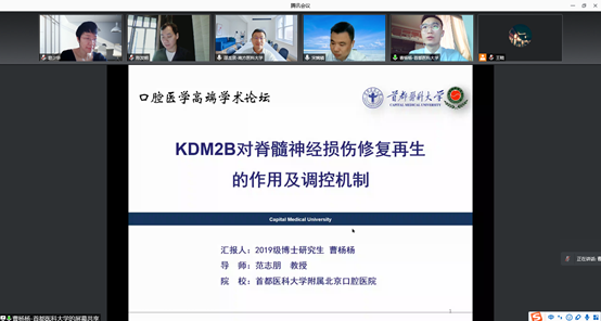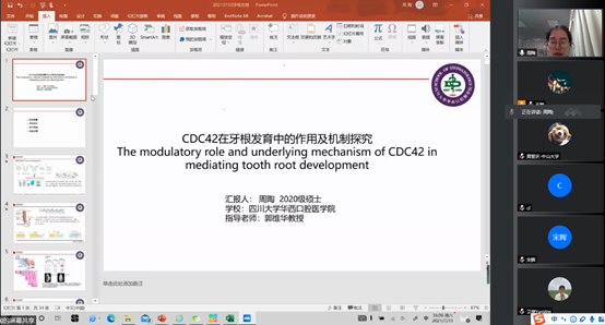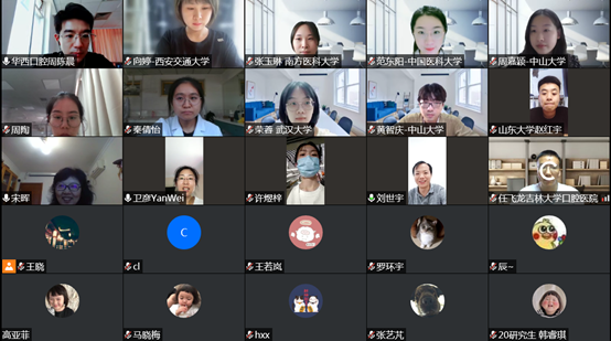 为促进优秀研究成果的交流,依托研究生暑期学校-口腔医学高端学术论坛平台,学院于7月31日在线上举行了研究生科研创新成果交流论坛。国内知名的口腔院校四川大学、空军军医大学、吉林大学、天津医科大学、中国医科大学、西安交通大学、中山大学、浙江大学、武汉大学、首都医科大学、南方医科大学、山东大学共推荐了27名口腔医学专业优秀博士、硕士研究生参加了论坛交流。