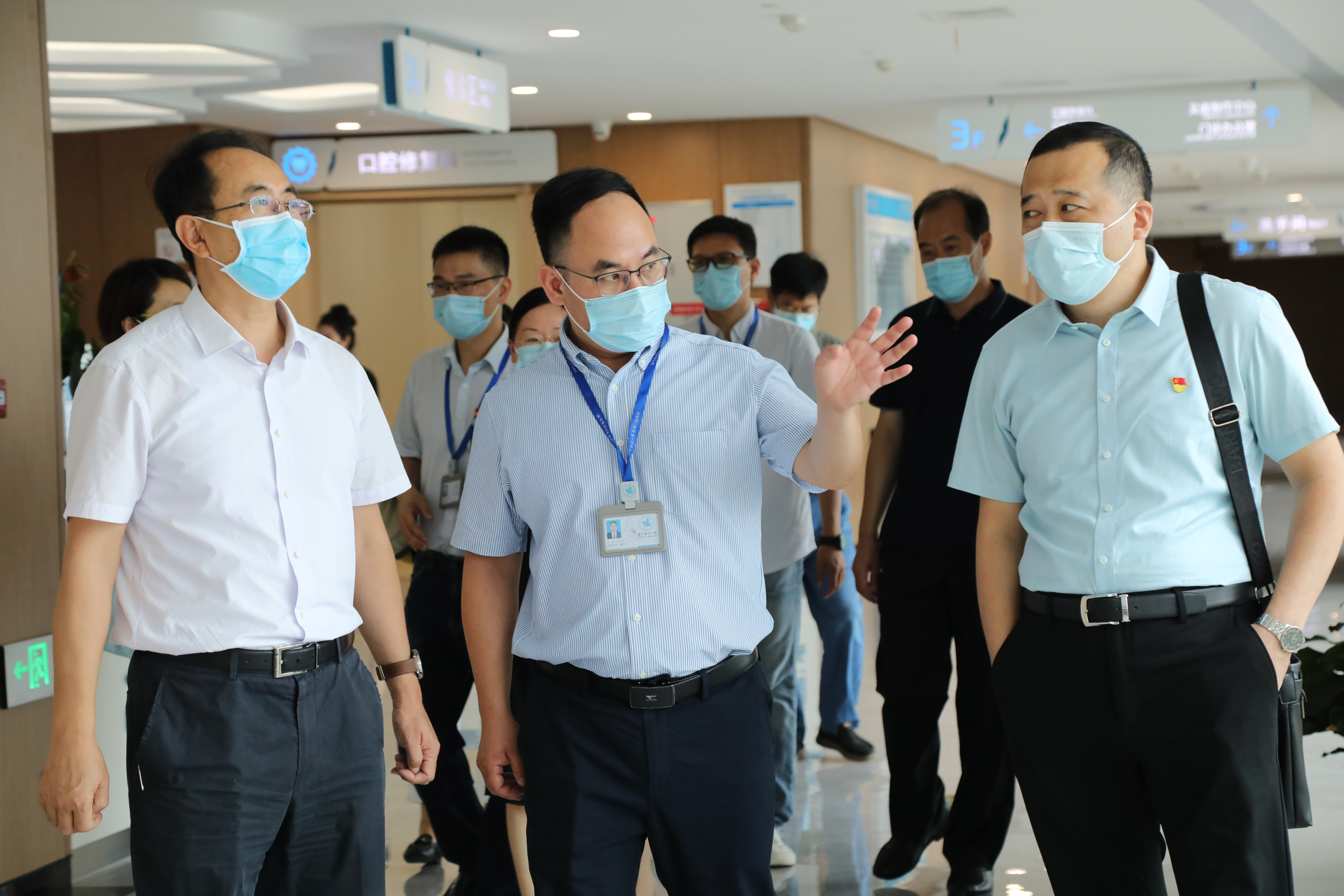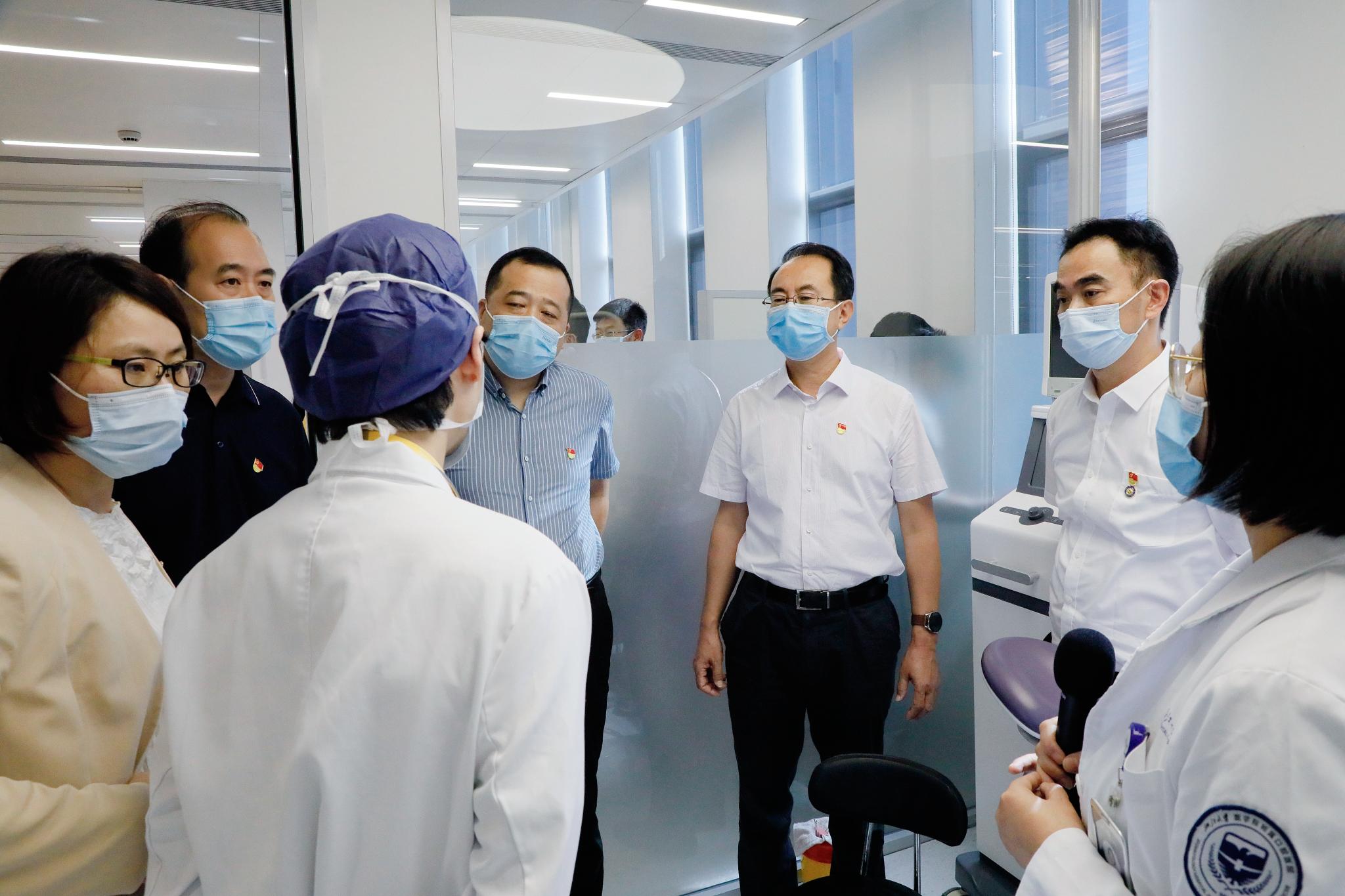 9日上午,吕波一行来到温州医科大学附属口腔医院龙湾总院区访问交流,院党委书记麻健丰向大家介绍了温医大口腔的发展历程及在医疗、教学、科研、管理和文化等各方面工作取得的成绩。双方围绕党的建设、新院区规划建设、人才培养、绩效管理和文化建设等方面内容进行了深入交流。随后实地参观了龙湾总院区部分临床医技科室、病房及消毒供应中心和义齿制作中心等。