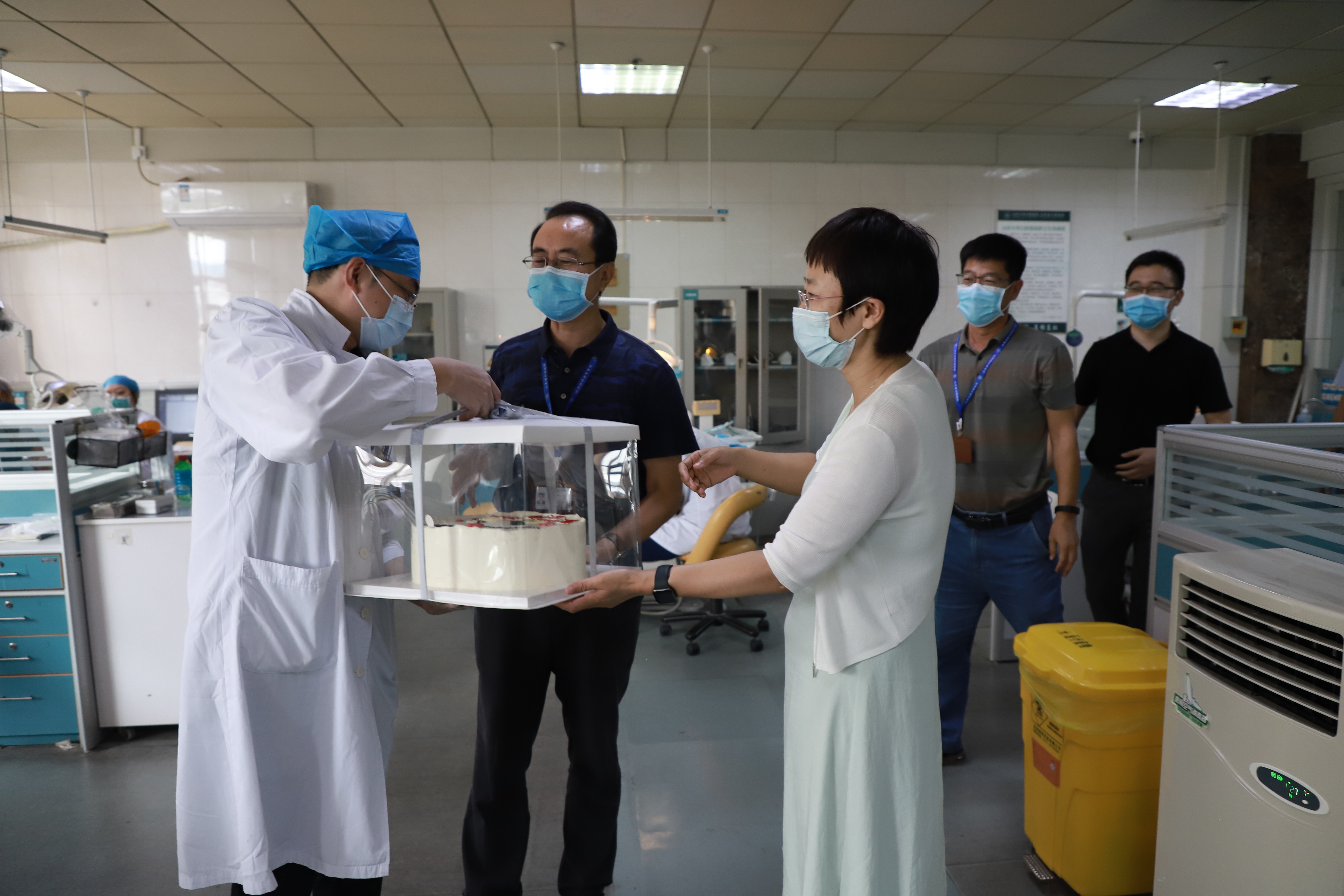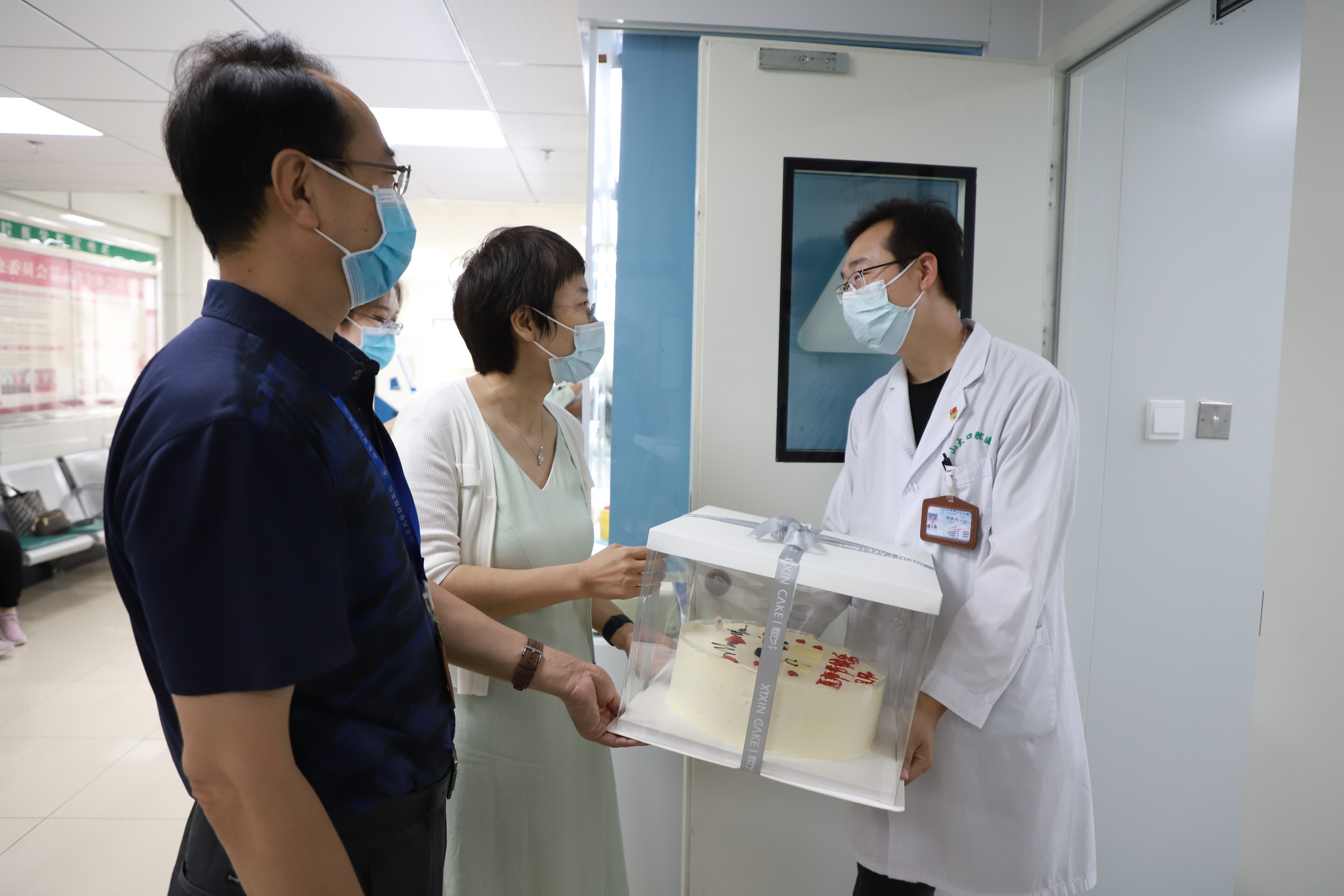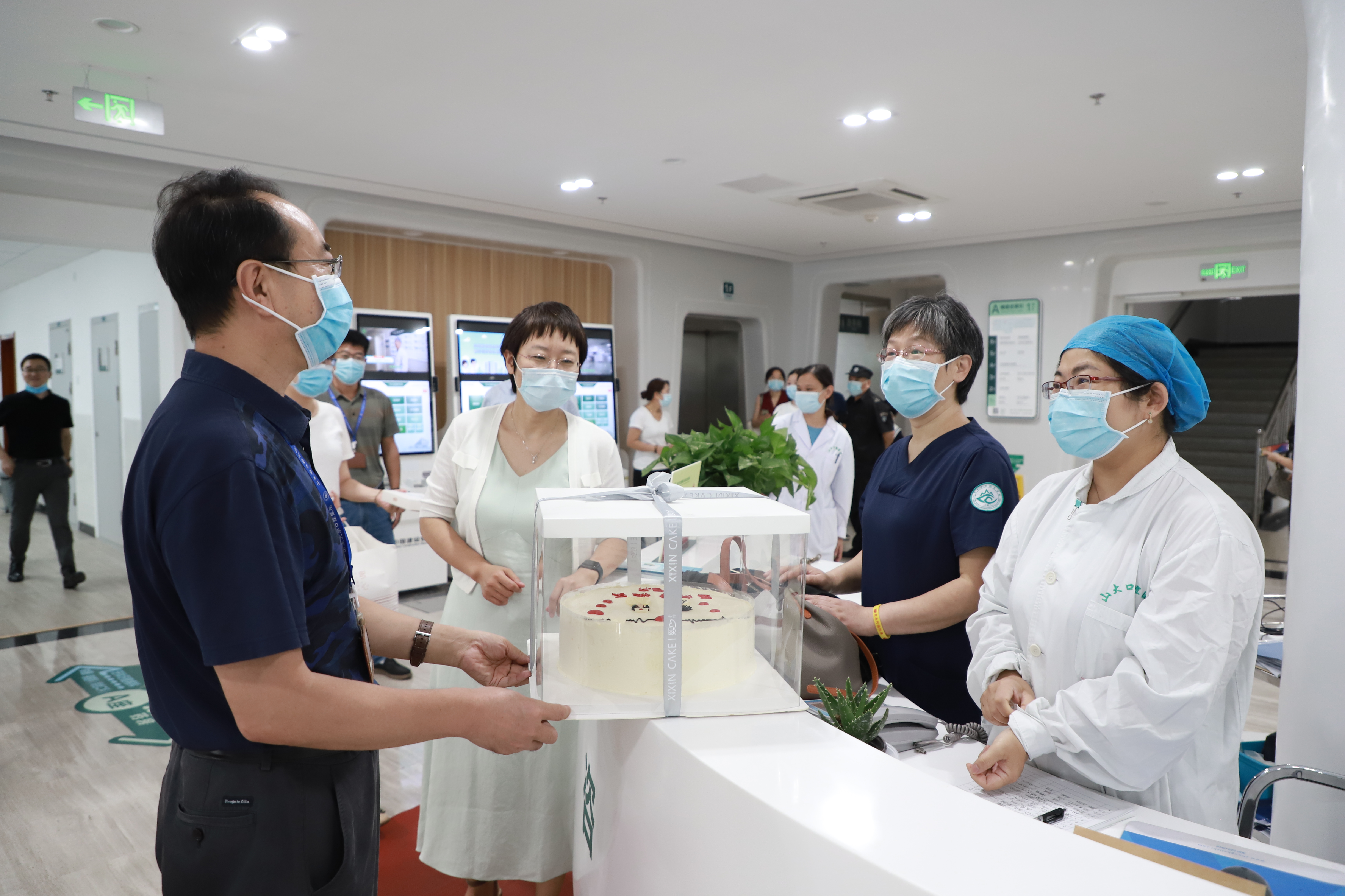 19日上午,党委书记吕波,院长葛少华,党委副书记齐山华,党委副书记、纪委书记陈国军,党委副书记柳松等领导班子成员深入临床医技科室慰问坚守在工作岗位的教职医务员工,送上医师节定制款蛋糕,以表达诚挚的问候和节日的美好祝愿。每到一处,院领导都与今天在岗的教职医务员工亲切交谈,对他们的辛勤付出表示感谢,希望大家秉持敦医励学、至精至诚的院训精神,不断提高医疗技术水平,为广大口腔患者提供更为优质的医疗服务。