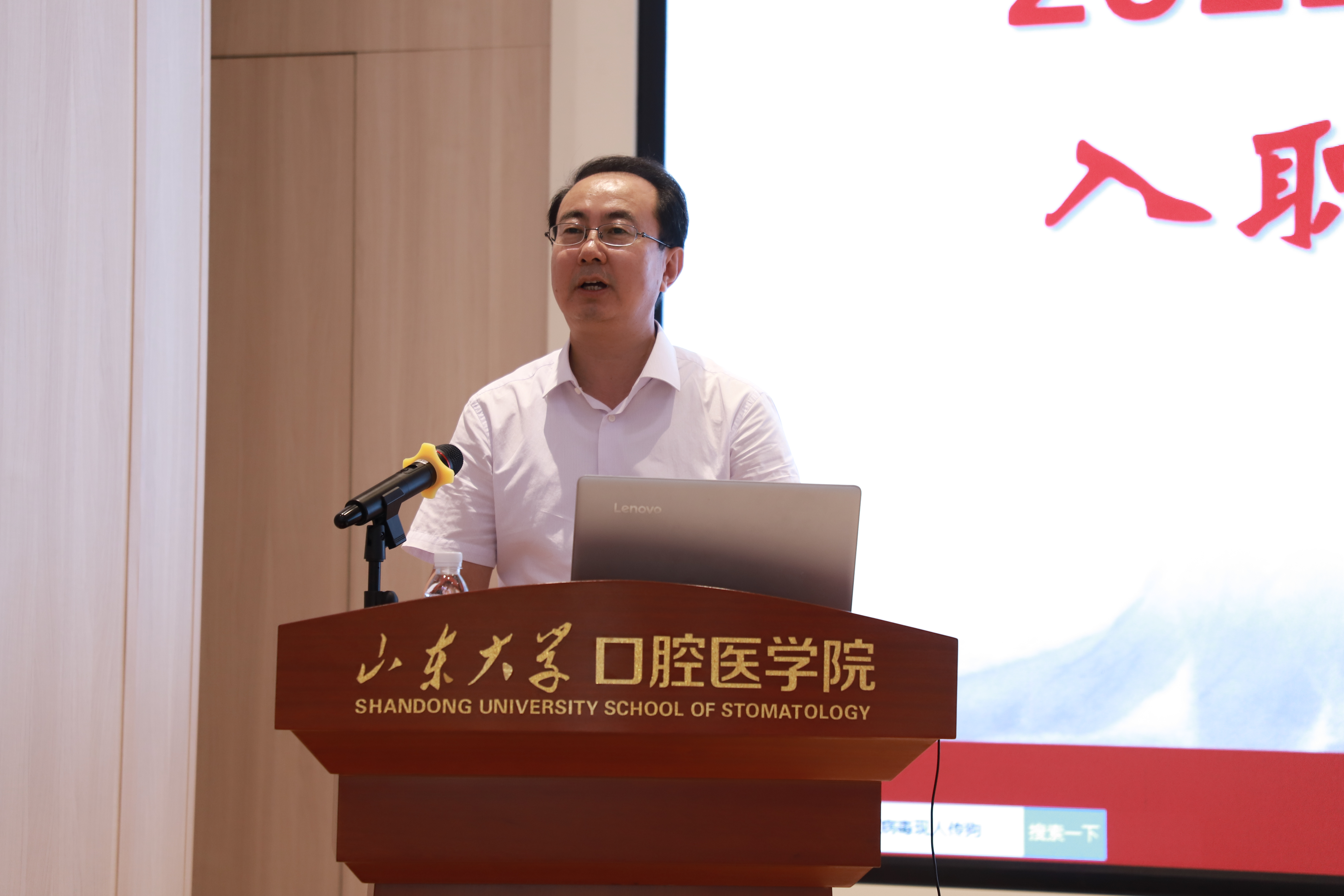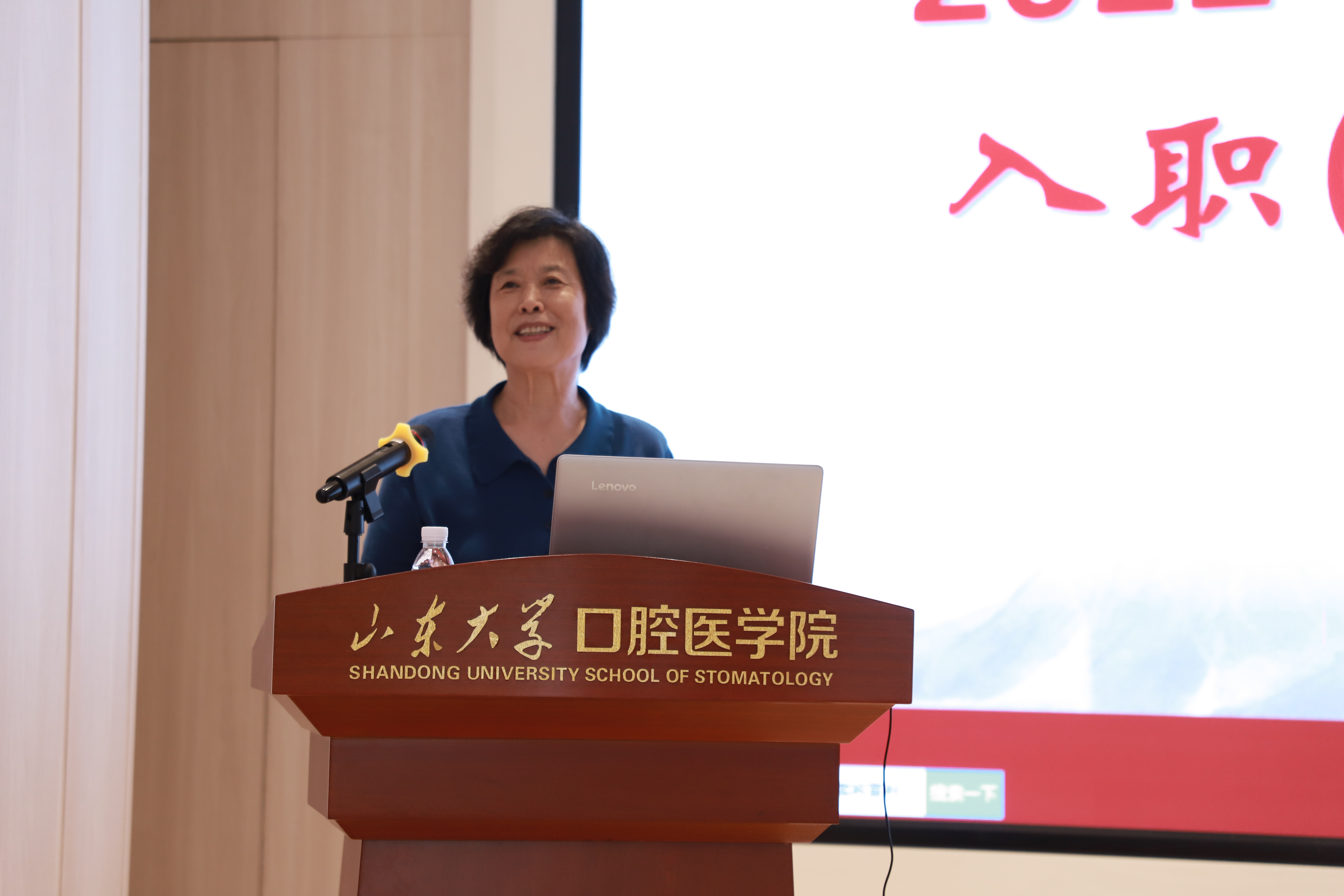 张志华以《不负韶华,为山大口腔医学院的发展建功立业》为主题,从自身工作经历谈起,表达了她对学院(医院)的深厚情谊,同时深情寄语广大新职工,在学院(医院)这片广阔的平台和沃土上,早日成长为各项事业发展的主力和栋梁。在讲话中,张志华向大家简要介绍了学院(医院)发展的历史和优势,同时深刻剖析了当前制约学院(医院)发展的高端人才、科研成果等瓶颈因素,勉励大家勇攀事业高峰,擦亮口腔特色品牌,争做口腔医学领军人物。她对新职工提出四点希望,一是要坚定理想信念。理想和信念是树人之本、成才之基,必须做到坚定不移跟党走,自觉接受党的领导,热爱伟大的祖国,与伟大的祖国同呼吸、共命运,为实现中华民族的伟大复兴作出贡献。二是要主动适应社会和环境。在工作实践中要讲奉献、讲团结、顾大局、识大体,要尊重领导、尊重师长,要积极融入团队,实现合作共赢。在团队中要坚持互相帮助,要取人之长、补己之短,努力成为一个令人尊重的人。三是要注重厚植医德,涵养医风。古人说,“不为良相,便为良医”。良相能治国安邦,良医能悬壶济世。希望各位新职工心怀慈爱怜悯之心,急病人之所急,想病人之所想,一视同仁,不能厚此薄彼。四是要做到爱岗敬业。学院(医院)是集医教研三位一体的实力雄厚的工作平台,广大新职工要立足工作岗位,不断探索、努力进步,为学院(医院)发展贡献青春年华,开拓口腔医学事业新的天地。
