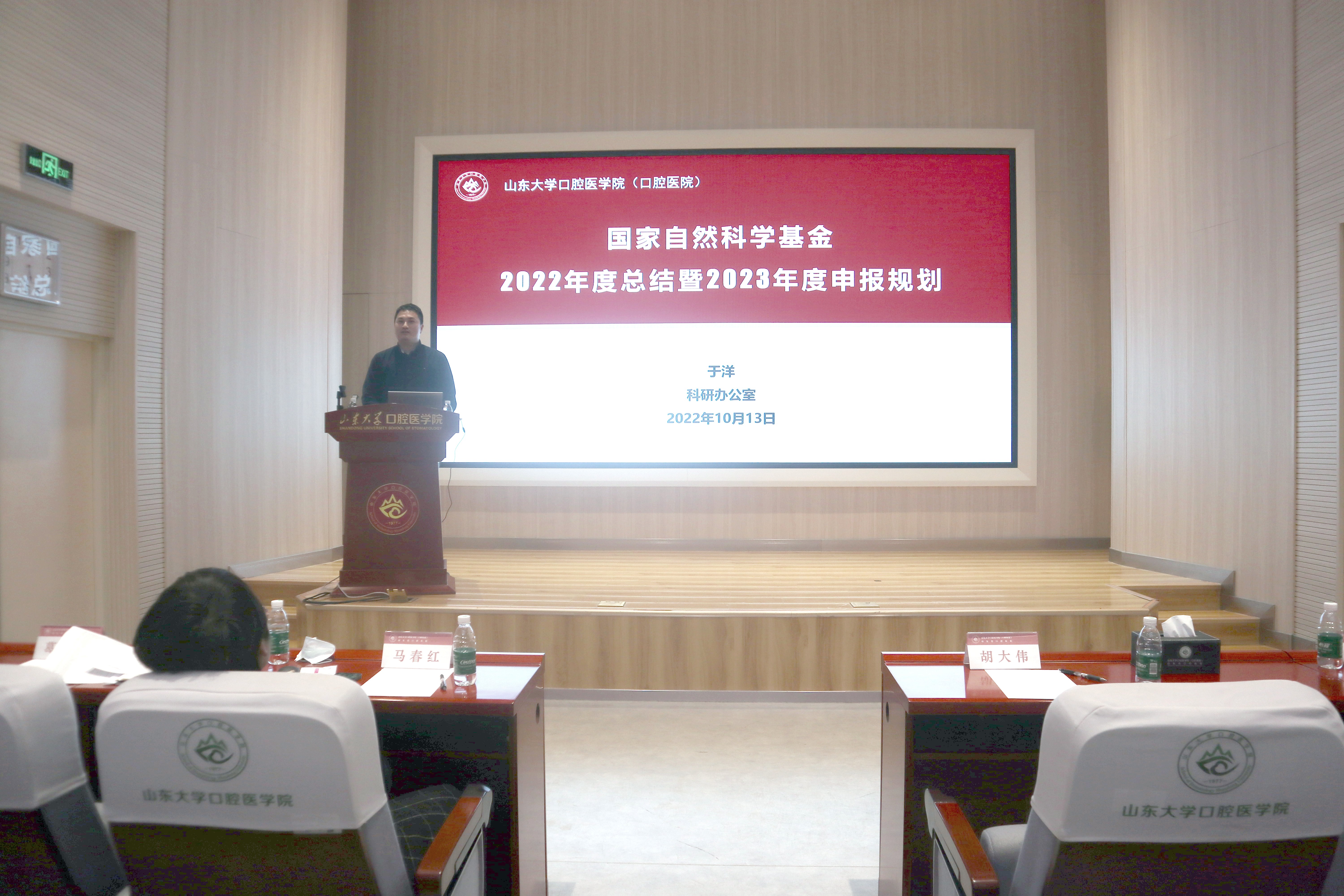 于洋作了题为“国家自然科学基金2022年度总结暨2023年度申报规划”的报告,详细介绍了学院(医院)2022年度申报及立项和2023年度申报规划等有关情况。