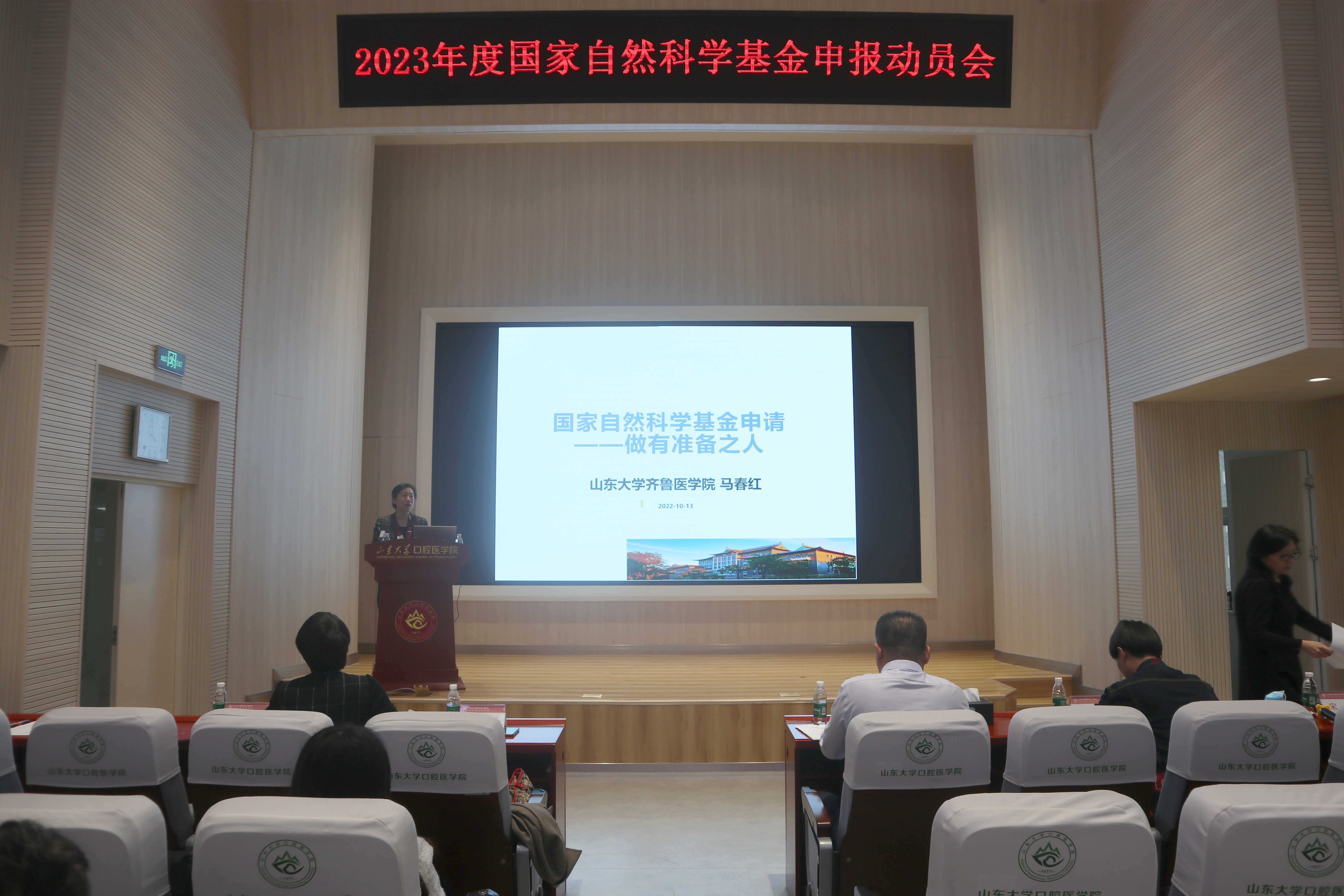 为切实做好2023年度国家自然科学基金申报相关工作,进一步提升国自然申报质量,10月13日,学院(医院)在C509报告厅举办2023年度国家自然科学基金申报动员会。会议邀请山东大学科学技术研究院副院长胡大伟和齐鲁医学院副院长马春红对我院国家自然科学基金申报工作进行指导,山东大学科学技术研究院成果与信息中心主任张纪芝进行科技奖励宣讲。山东大学科学技术研究院国家自然基金项目部孙婕老师、毛毳老师,学院(医院)院长葛少华、副院长宋晖、科研办公室主任于洋参加会议。会议由宋晖主持。