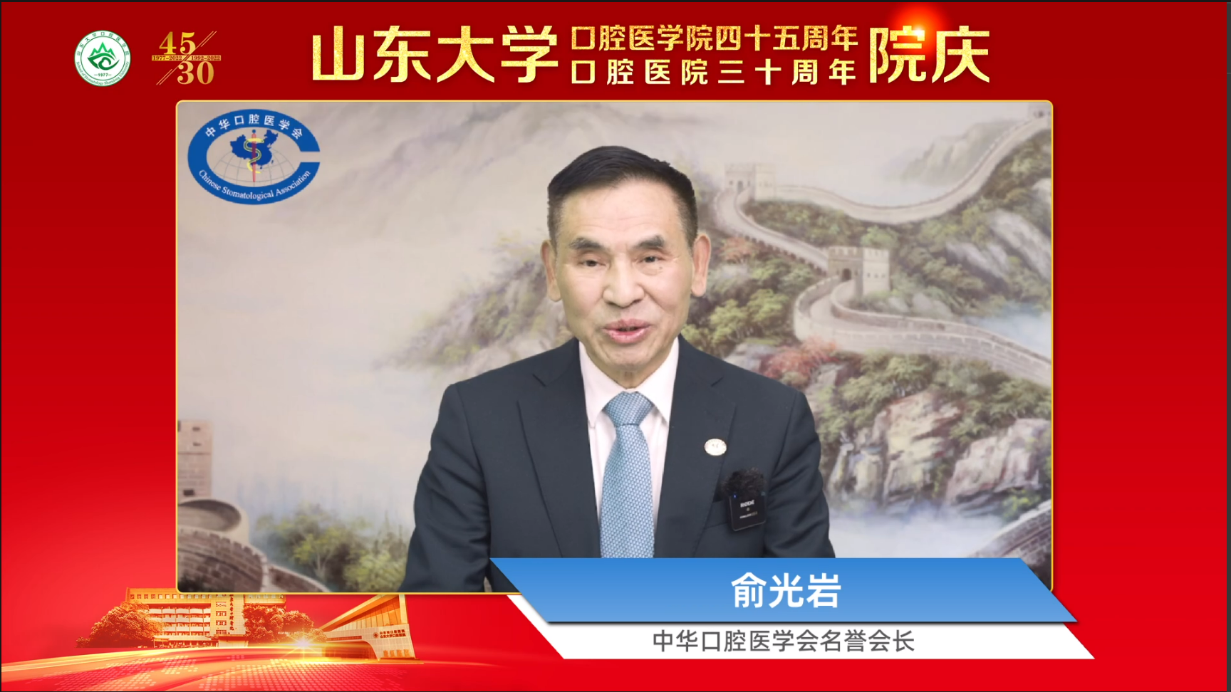 俞光岩对学院建院45周年、医院建院30周年表示衷心祝贺,他指出多年来学院(医院)在历届院领导的带领下,在教学、科研、医疗等各方面均取得了显著成绩,为山东省民众的口腔健康和全国口腔医学事业的发展作出了重要贡献。他希望学院(医院)能继续以更加奋进的姿态,更加有力的举措,更加扎实的工作,为创建一流口腔医学院(口腔医院)持续努力,为实现口腔医学强国的共同目标作出更大贡献。