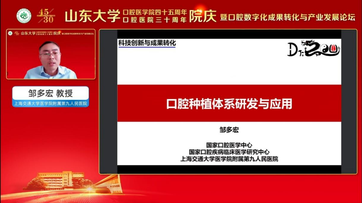 为进一步推动口腔医疗技术发展,促进口腔数字化成果转化,12月23日上午,山东大学口腔医学院(口腔医院)以学院四十五周年、医院三十周年院庆为契机,以线上直播的方式召开口腔数字化成果转化论坛。