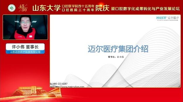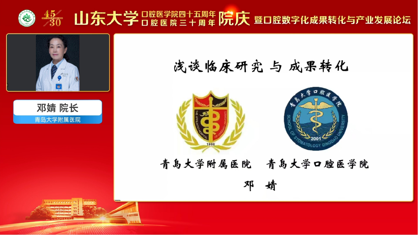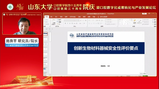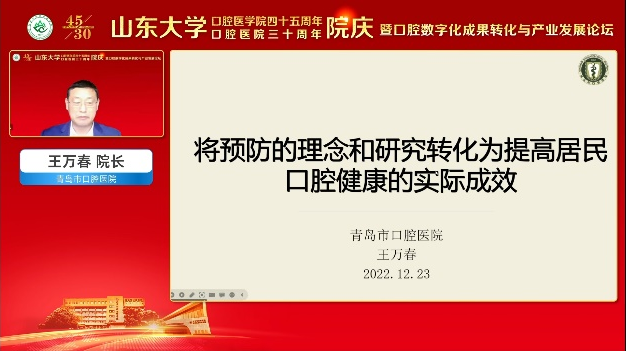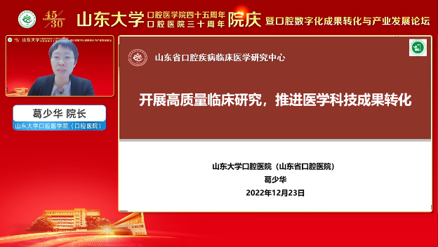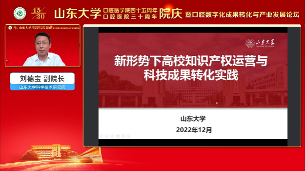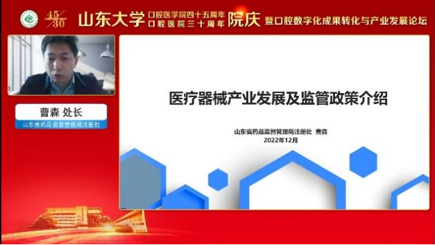 为进一步提高科技成果转化和产业化水平,促进口腔医学产业的发展,12月23日下午,山东大学口腔医学院(口腔医院)以学院四十五周年、医院三十周年院庆为契机,以线上直播的方式召开口腔医学产业发展论坛。