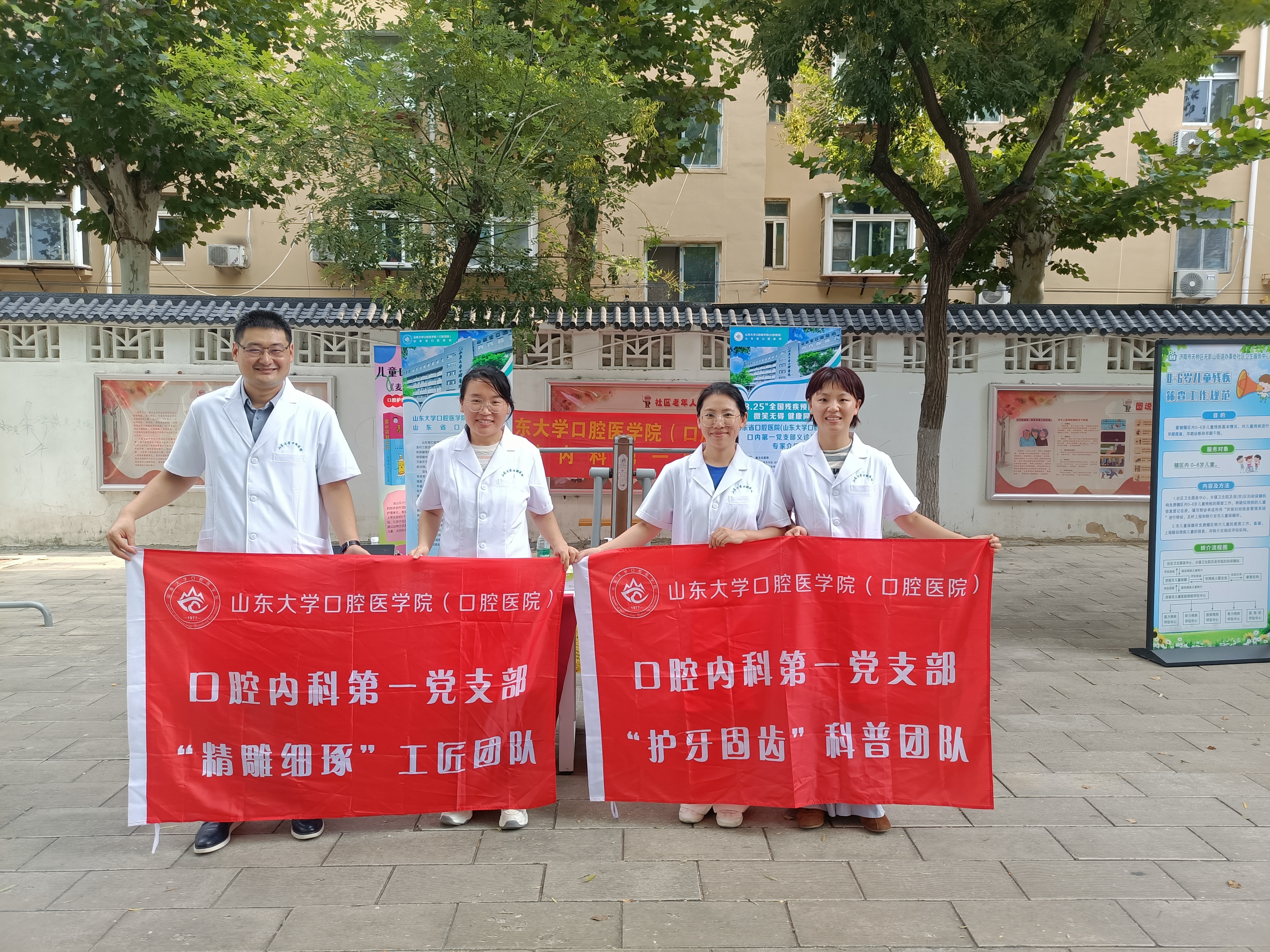 近日,山大口腔口内第一党支部党员邵金龙、葛堂娜、鞠洋洋、王章涵参加“益路天桥-惠残聚爱”残疾预防宣传教育活动暨第九次全国残疾预防日主题宣传活动,并同步开展“微笑无碍 健康同行”口腔健康义诊活动。