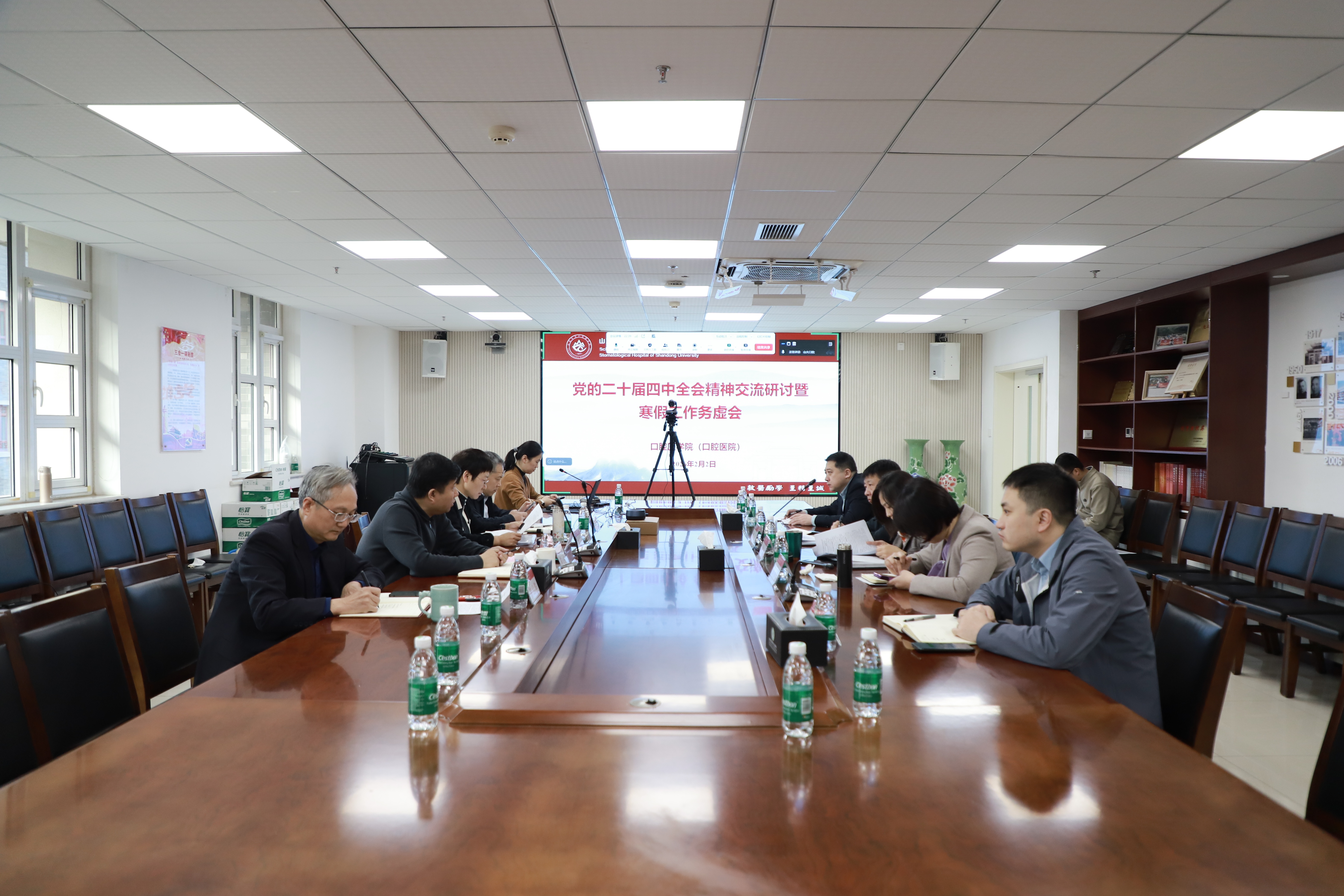 2月2日,山大口腔召开学习贯彻党的二十届四中全会精神交流研讨暨2026年领导班子寒假工作务虚会。学院(医院)党委书记张青、院长葛少华等领导班子成员出席会议。会议由张青主持。