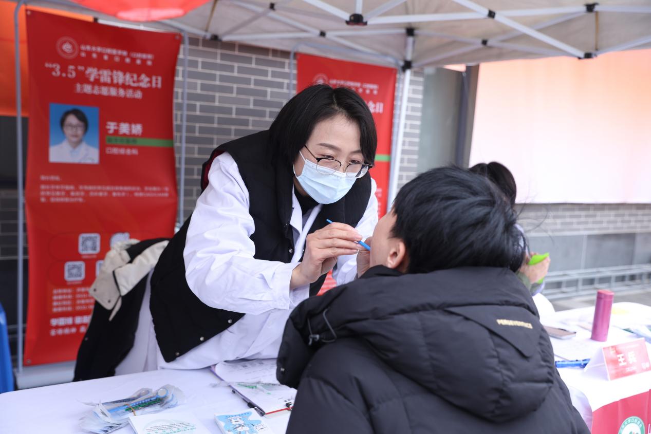 口腔健康义诊区,由急诊科主任刘峰、综合科于美娇、正畸科王兵等多科室医护人员组成的学雷锋义诊团队,耐心细致地为每一位前来咨询的师生提供免费口腔检查和专业健康指导。微光护理志愿服务队护士长严媛媛、山东大学学生微笑之光口腔爱心服务社则通过刷牙机、口腔模型演示等方式开展口腔卫生宣教,将专业口腔健康知识转化为通俗易懂的日常科普,用实际行动践行了服务师生学雷锋志愿服务精神。