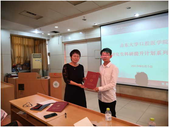 6月5日,我院“研究生科研提升计划”系列讲座首场开讲,山东大学基础医学院博士刘敏,山东大学晶体材料研究所博士马保金,结合自身科研历程向与会师生分享了如何做好科研的体会和经验。本场讲座由口腔医学院常务副院长葛少华主持,副院长宋晖,各级研究生聆听了本次讲座。